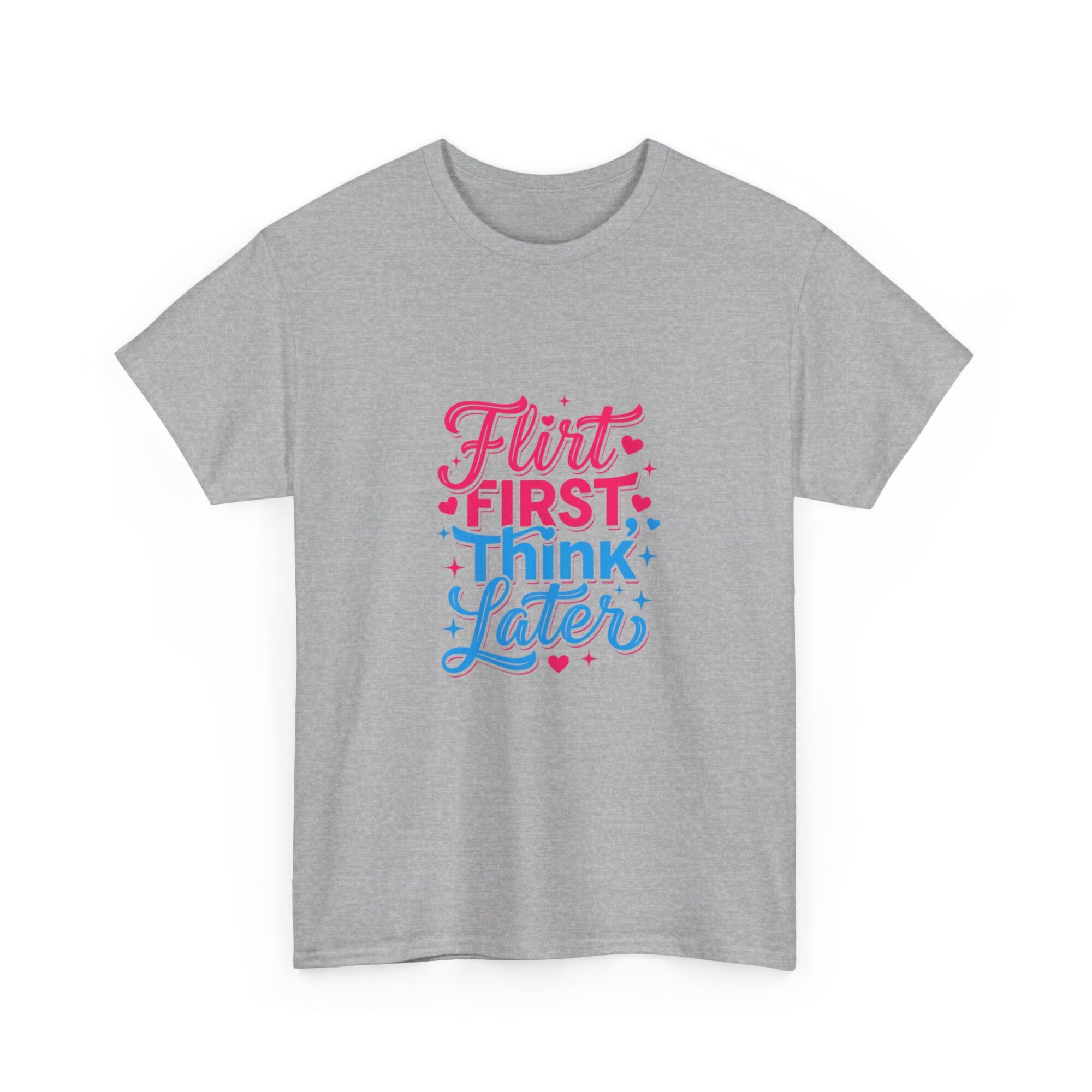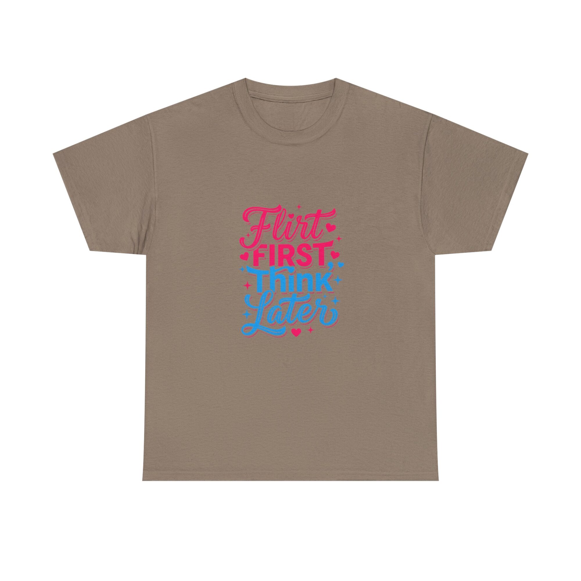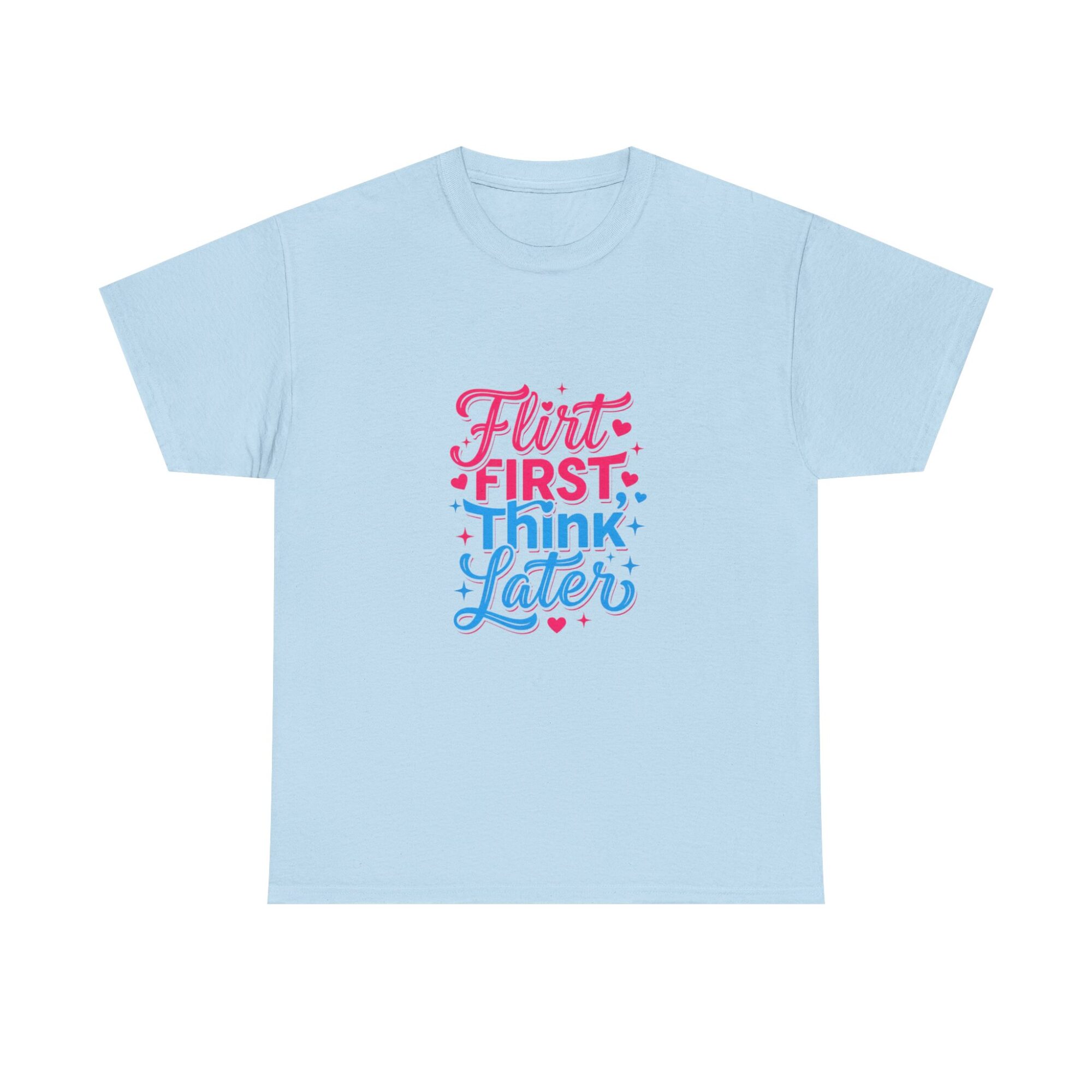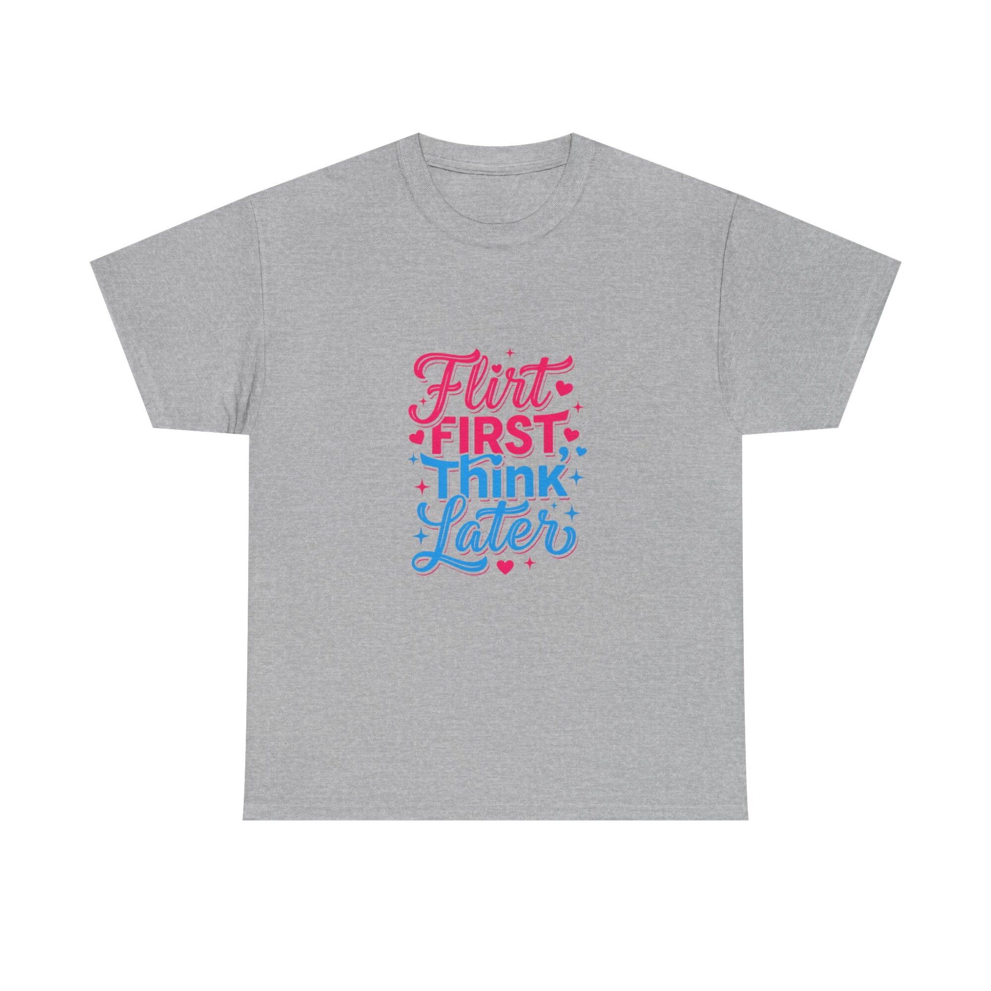 Express your playful side with our ‘Flirt First, Think Later’ graphic tee! Crafted from soft, breathable fabric, this premium unisex shirt is perfect for casual outings or as a unique gift. Featuring vibrant, long-lasting prints produced with professional Printify technology, it ensures you stand out effortlessly. Ideal for anyone looking to add a touch of humor and style to their wardrobe!