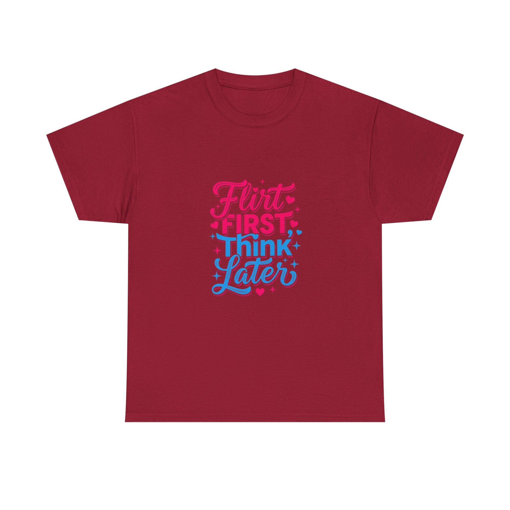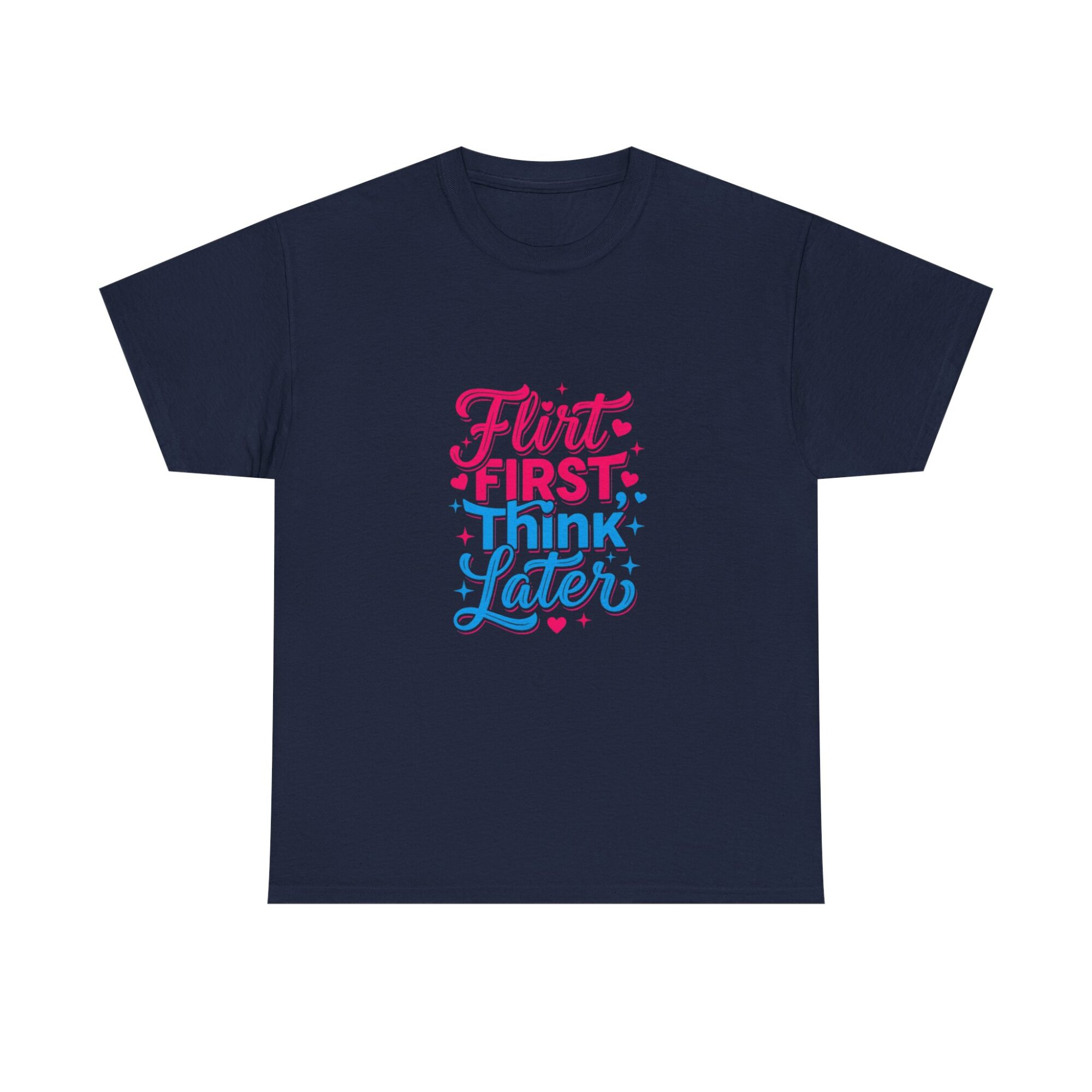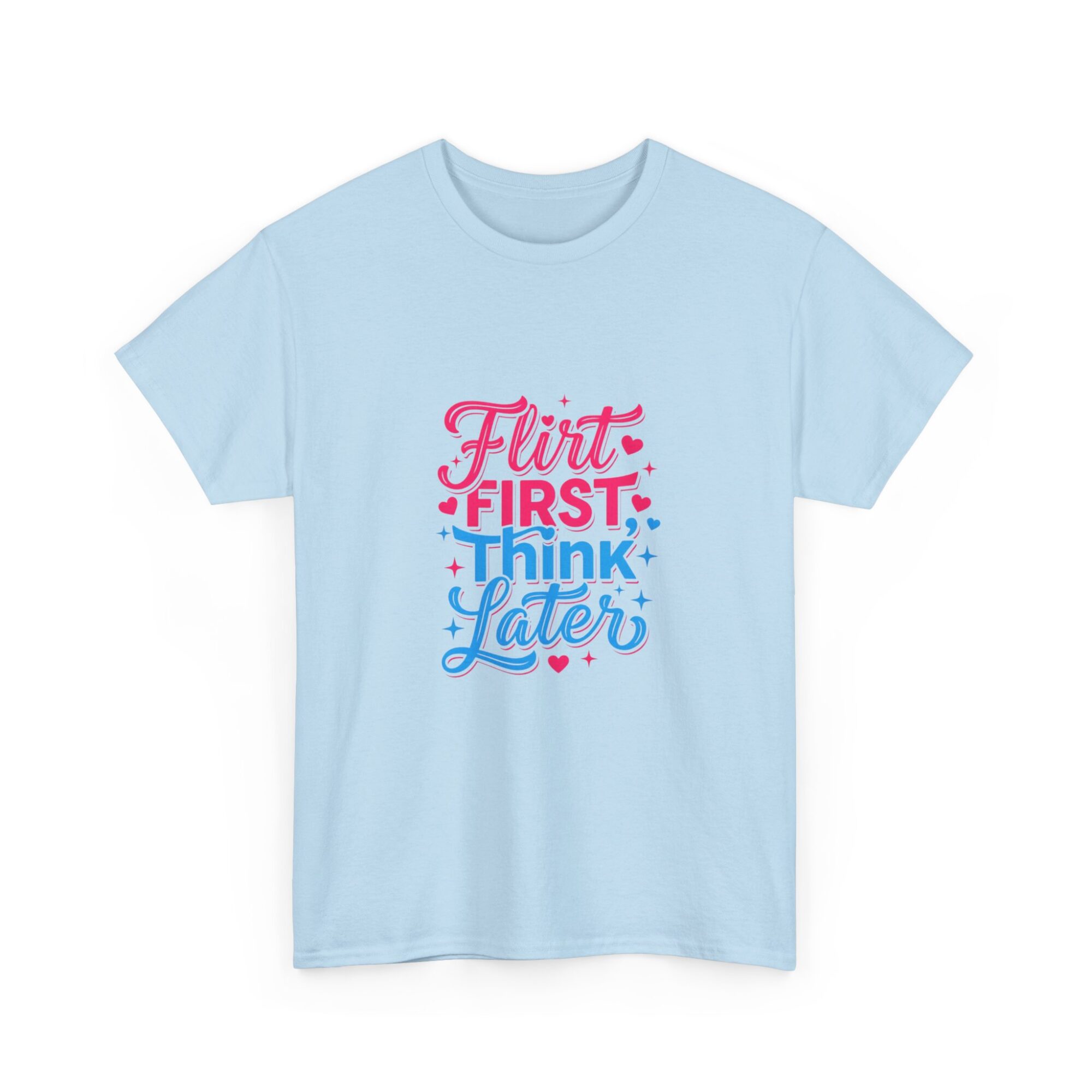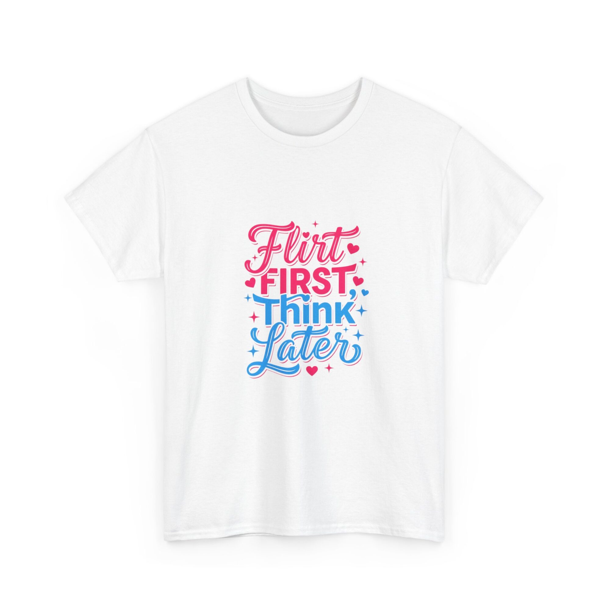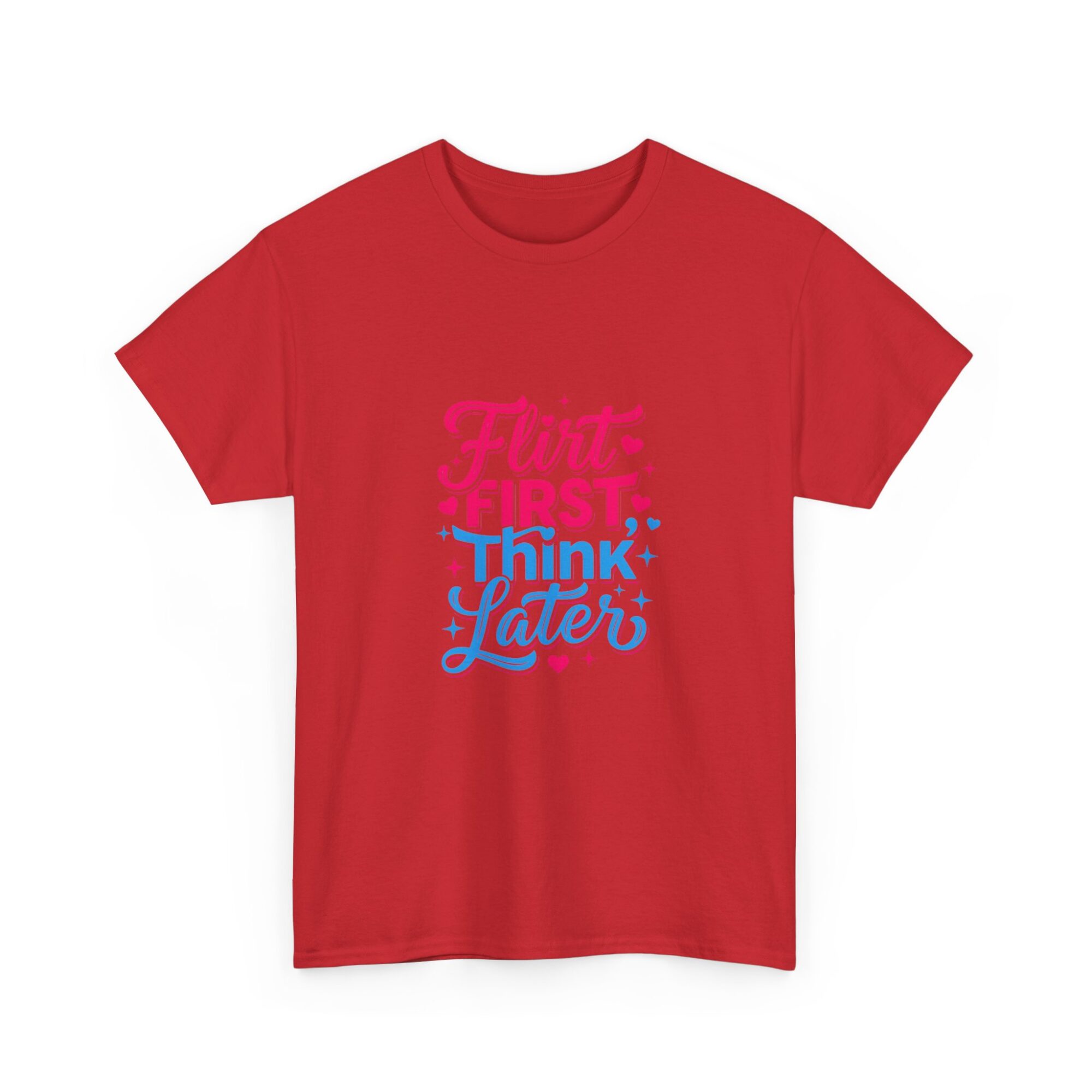 Express your playful side with our ‘Flirt First, Think Later’ graphic tee! Crafted from soft, breathable fabric, this premium unisex shirt is perfect for casual outings or as a unique gift. Featuring vibrant, long-lasting prints produced with professional Printify technology, it ensures you stand out effortlessly. Ideal for anyone looking to add a touch of humor and style to their wardrobe!