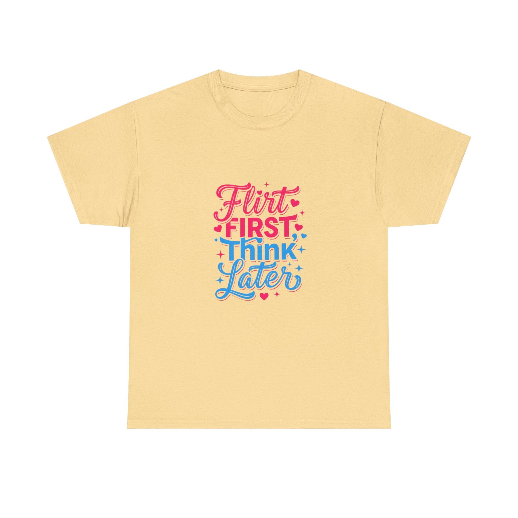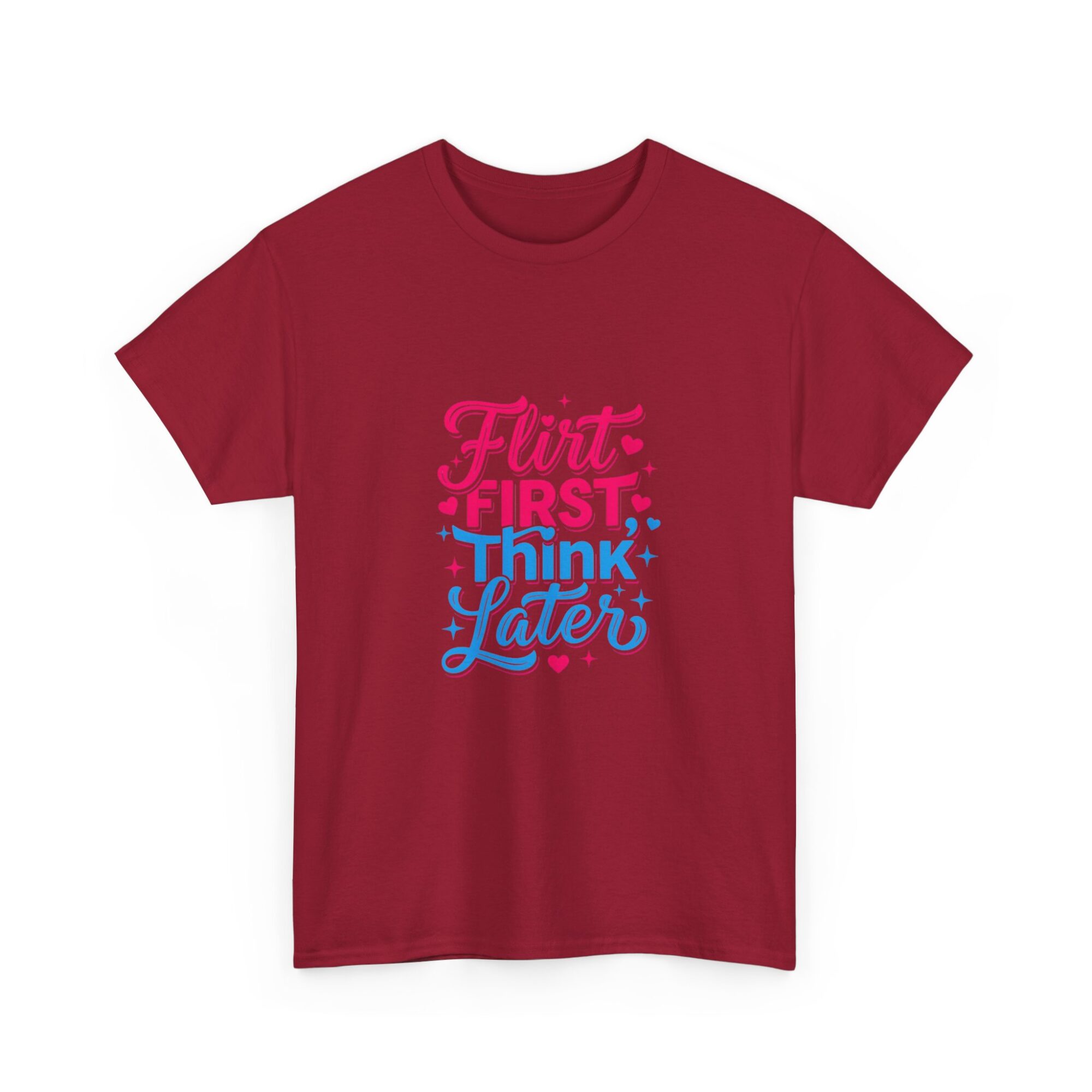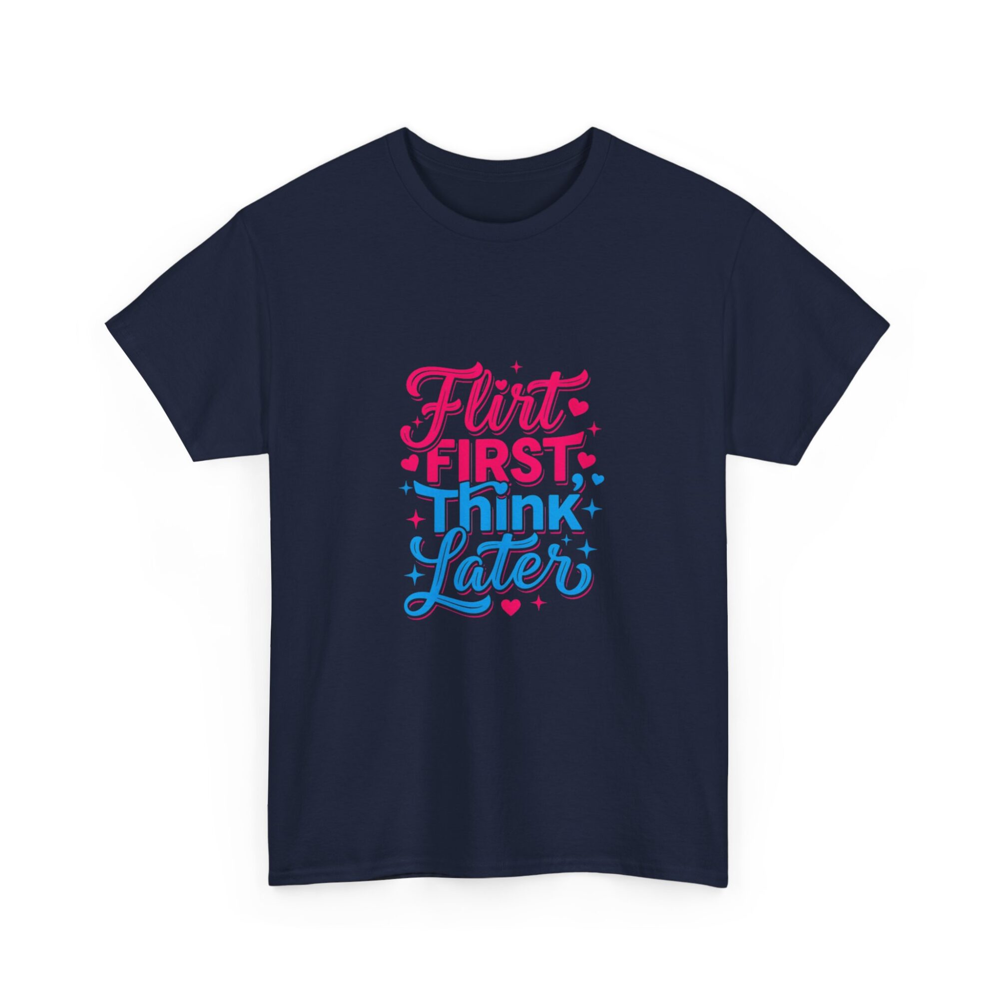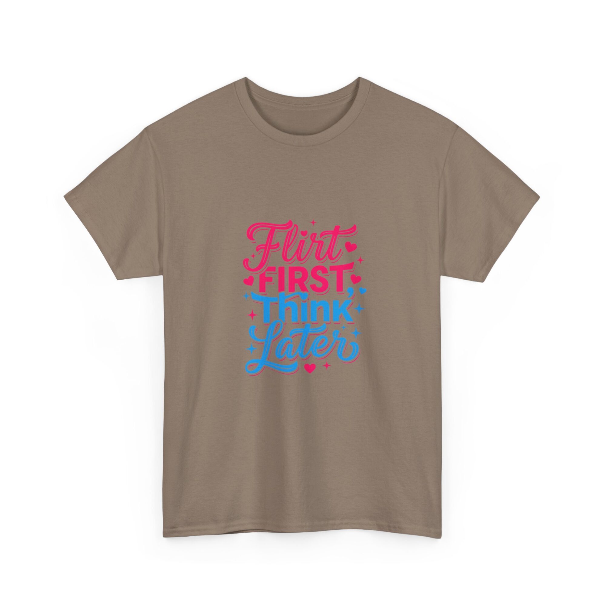 Express your playful side with our ‘Flirt First, Think Later’ graphic tee! Crafted from soft, breathable fabric, this premium unisex shirt is perfect for casual outings or as a unique gift. Featuring vibrant, long-lasting prints produced with professional Printify technology, it ensures you stand out effortlessly. Ideal for anyone looking to add a touch of humor and style to their wardrobe!