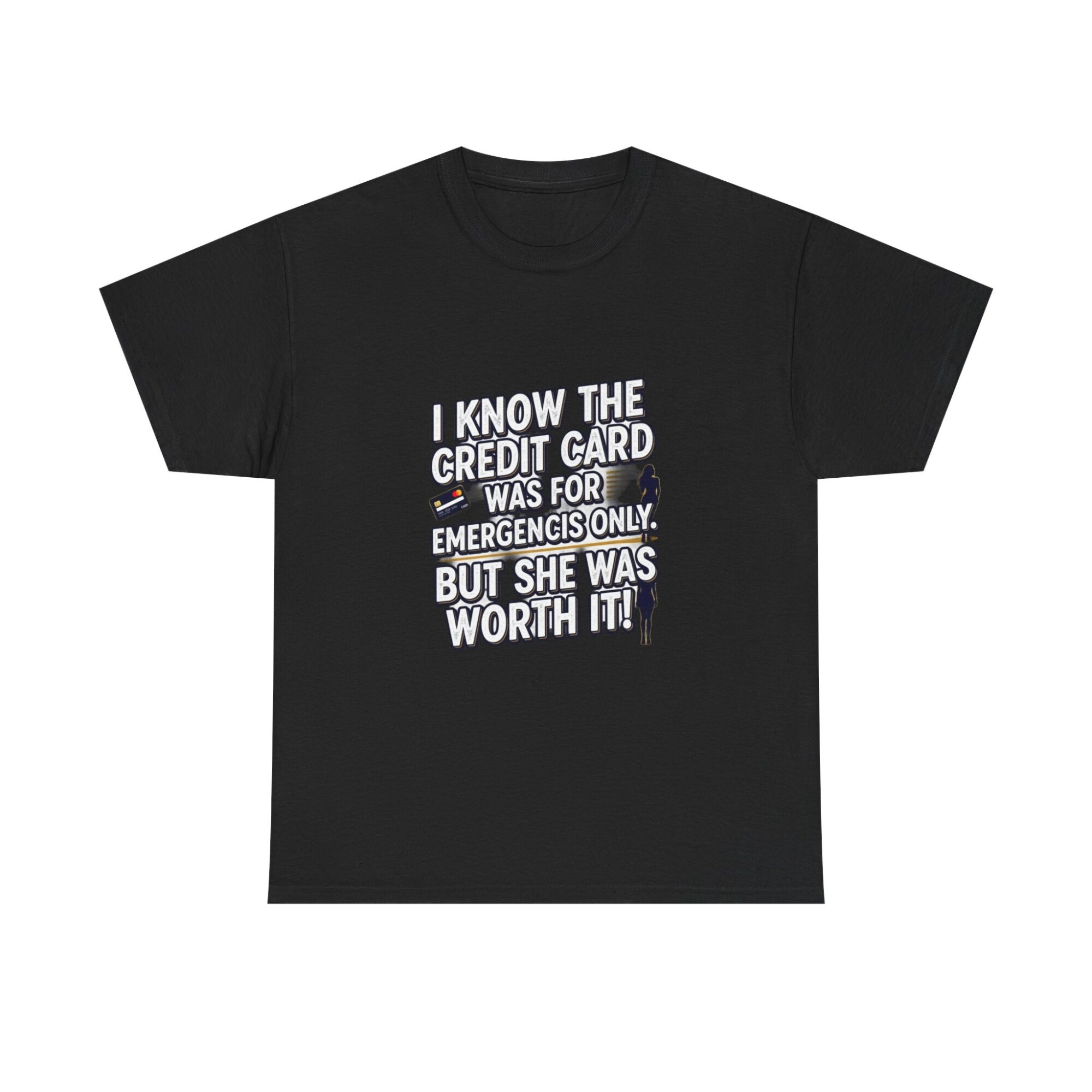 Make a statement with our premium unisex graphic tee featuring hilarious credit card humor. Perfect for casual wear, gifting, or just standing out effortlessly. Made from soft, breathable fabric and printed using cutting-edge Printify technology for vibrant, long-lasting designs. Elevate your wardrobe or surprise someone special with this unique t-shirt!
