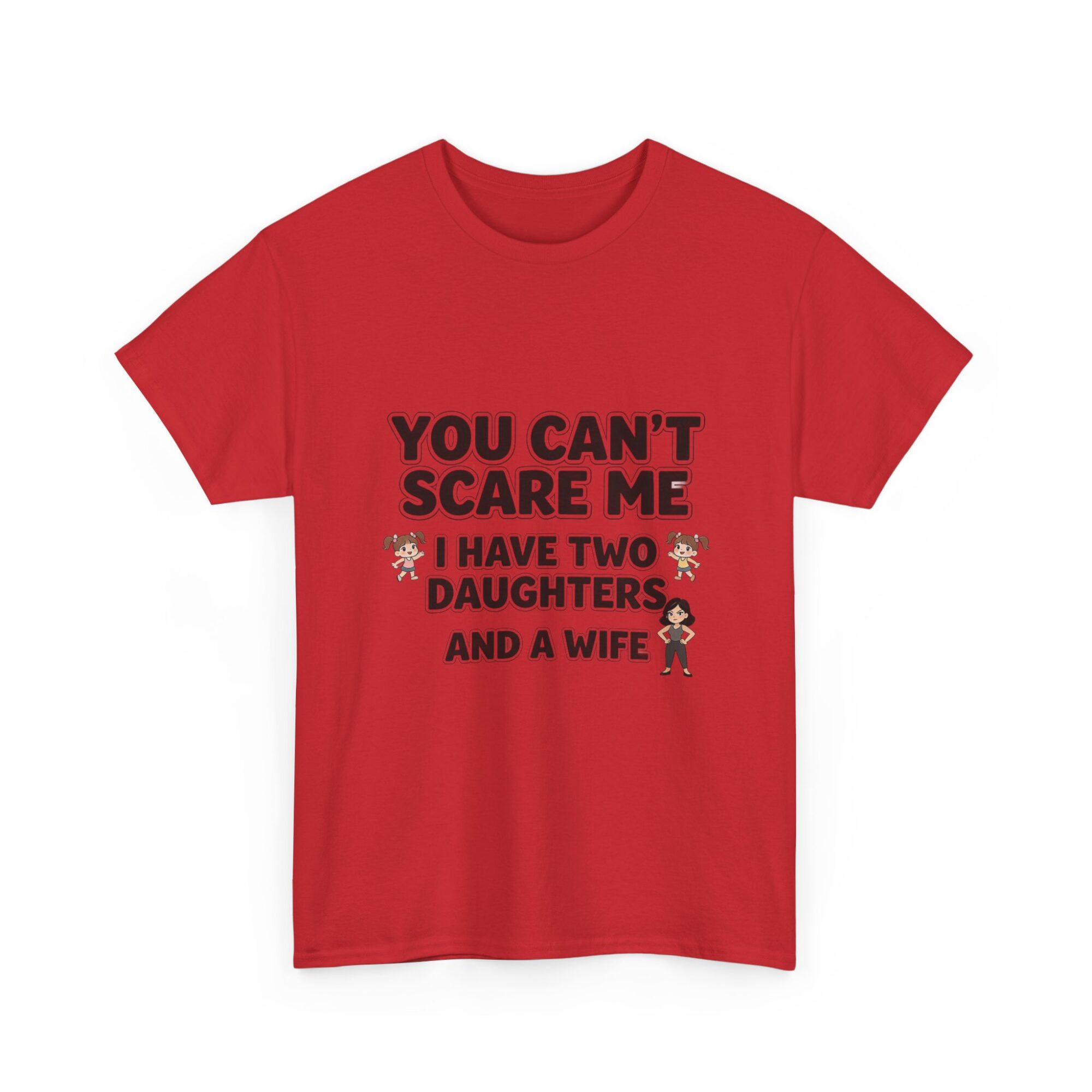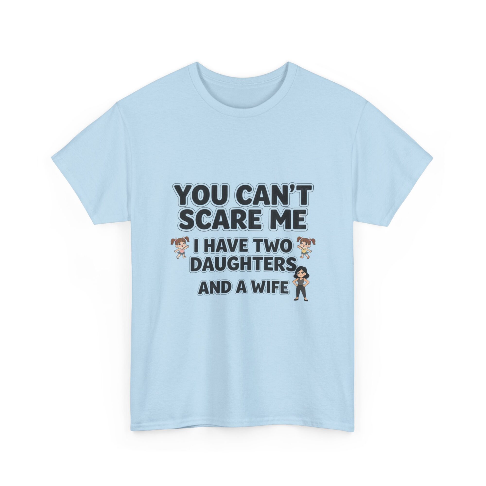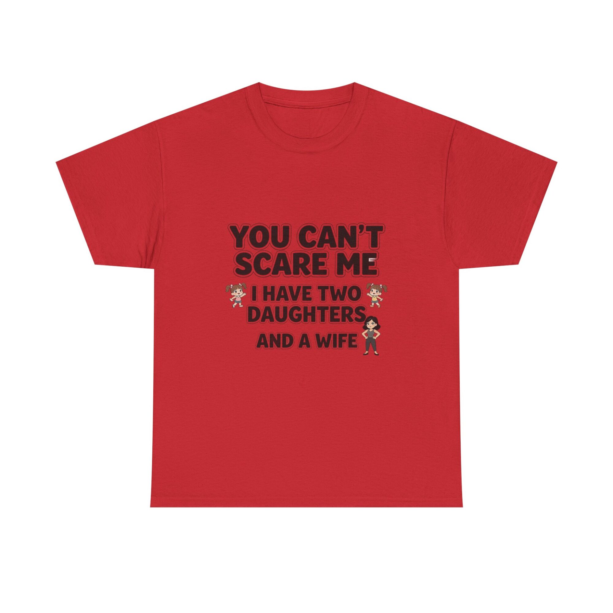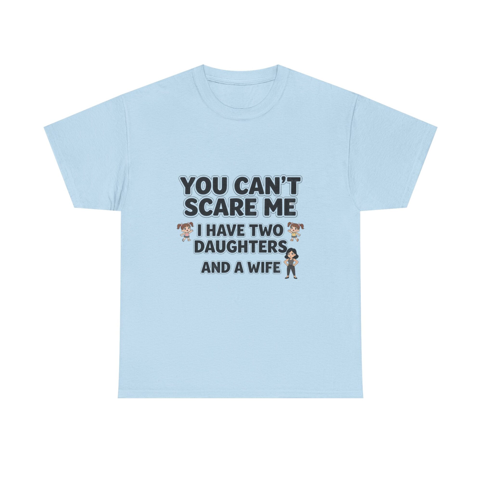 Embrace your sense of humor with our premium unisex graphic tee featuring the bold statement: ‘You Can’t Scare Me, I Have Two Daughters and a Wife.’ Made from soft, breathable fabric, this shirt is perfect for everyday wear. With high-quality print-on-demand technology, enjoy long-lasting vibrant designs. Ideal for casual outfits or as a thoughtful gift for him or her. Stand out effortlessly and show off your personality!