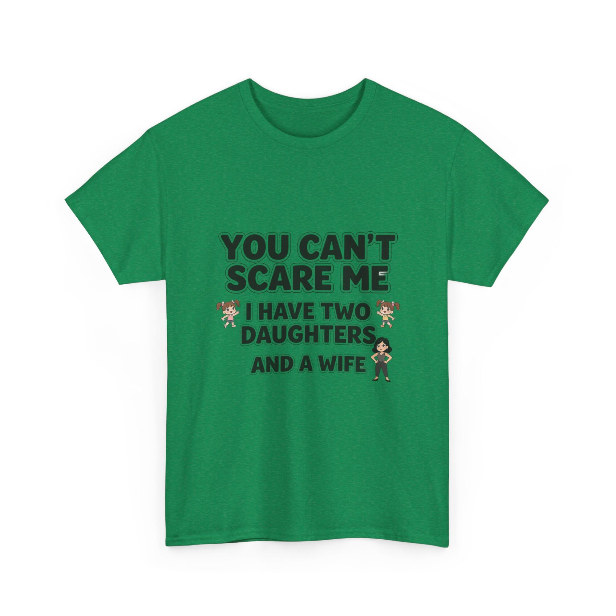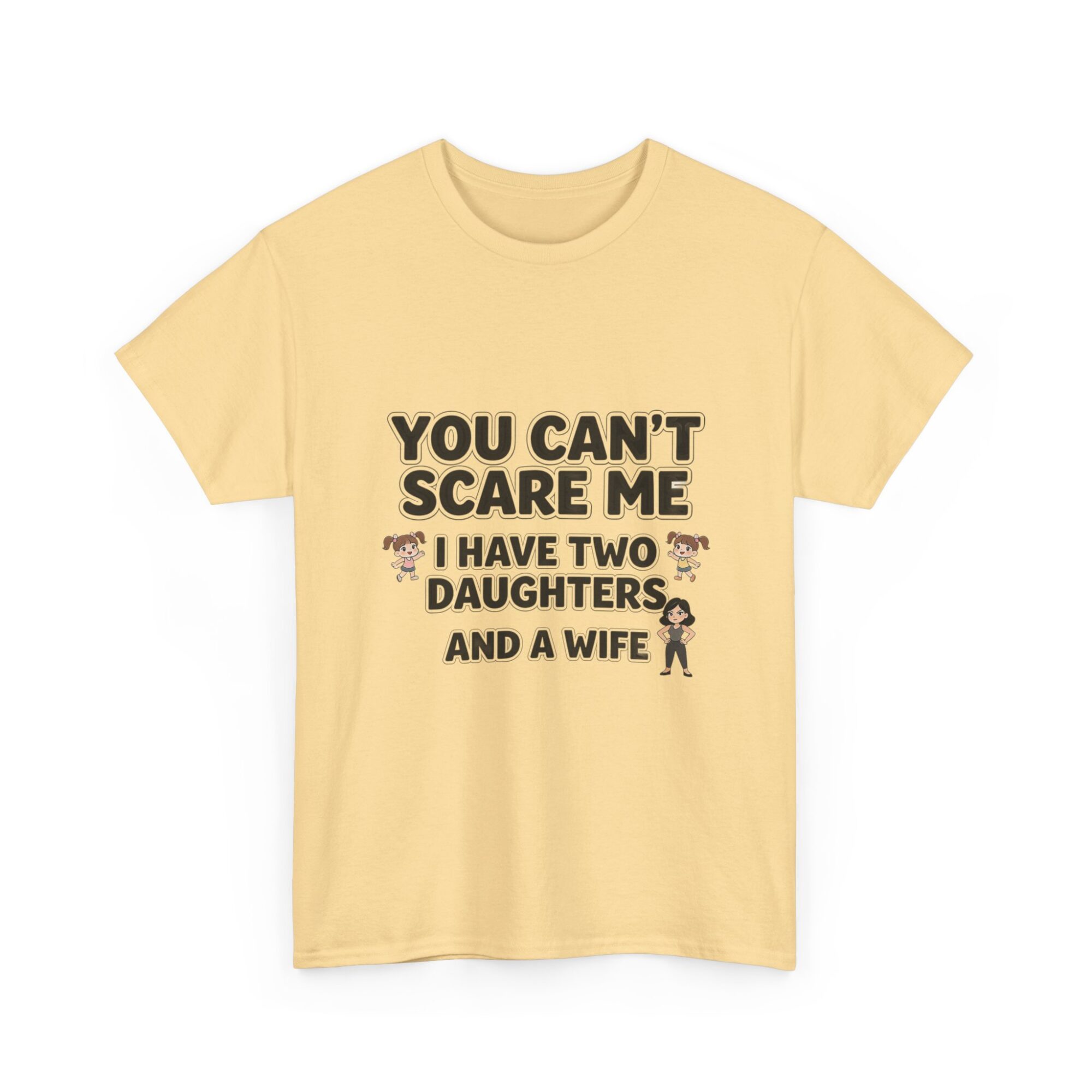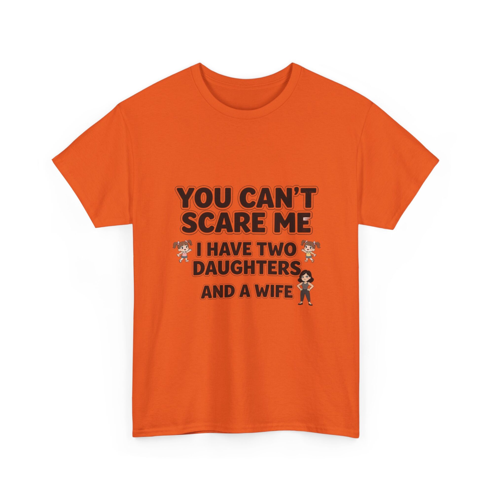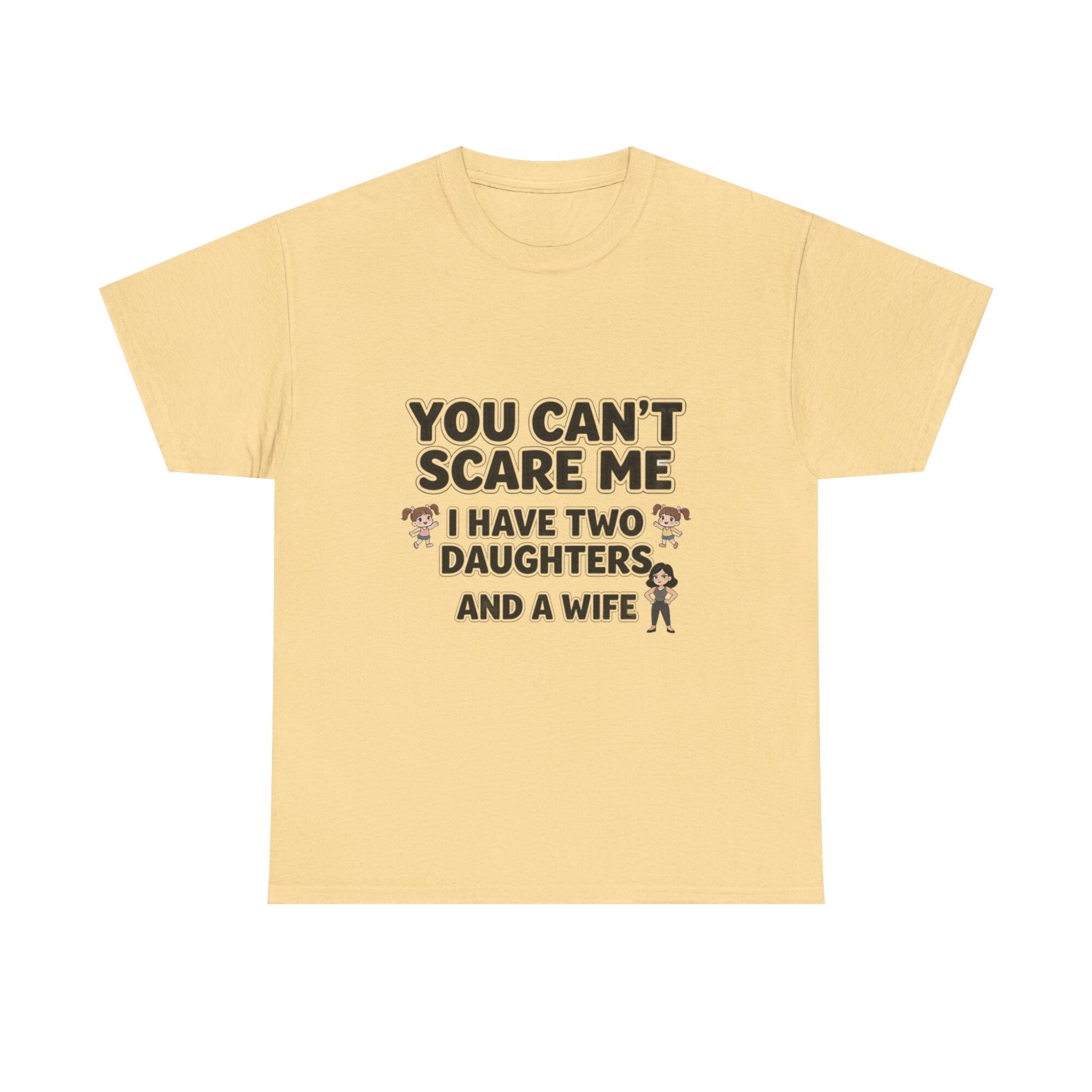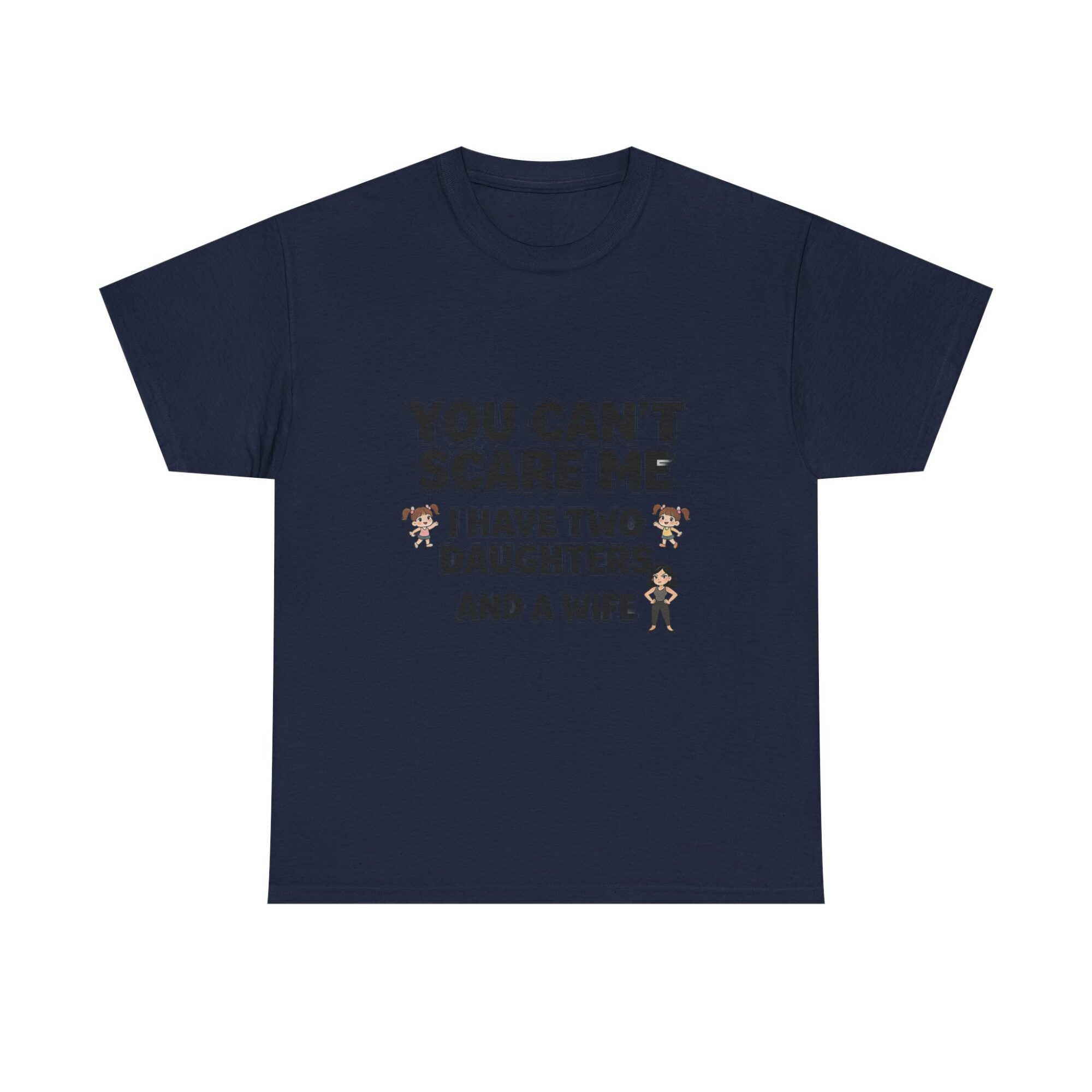 Embrace your sense of humor with our premium unisex graphic tee featuring the bold statement: ‘You Can’t Scare Me, I Have Two Daughters and a Wife.’ Made from soft, breathable fabric, this shirt is perfect for everyday wear. With high-quality print-on-demand technology, enjoy long-lasting vibrant designs. Ideal for casual outfits or as a thoughtful gift for him or her. Stand out effortlessly and show off your personality!