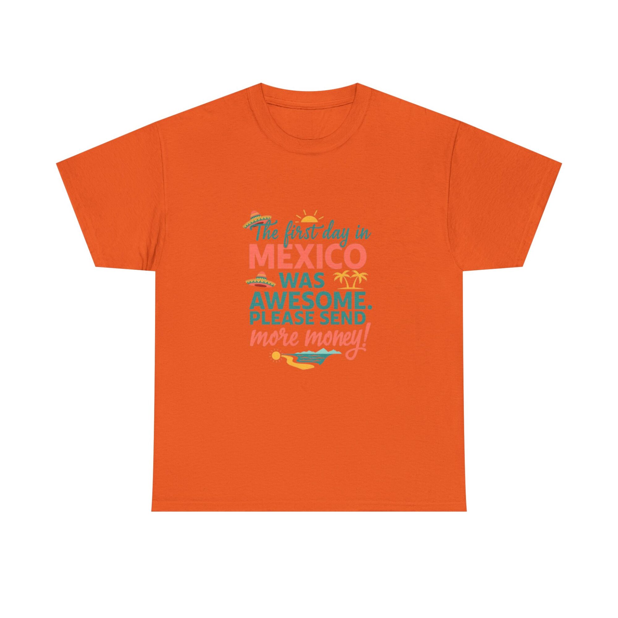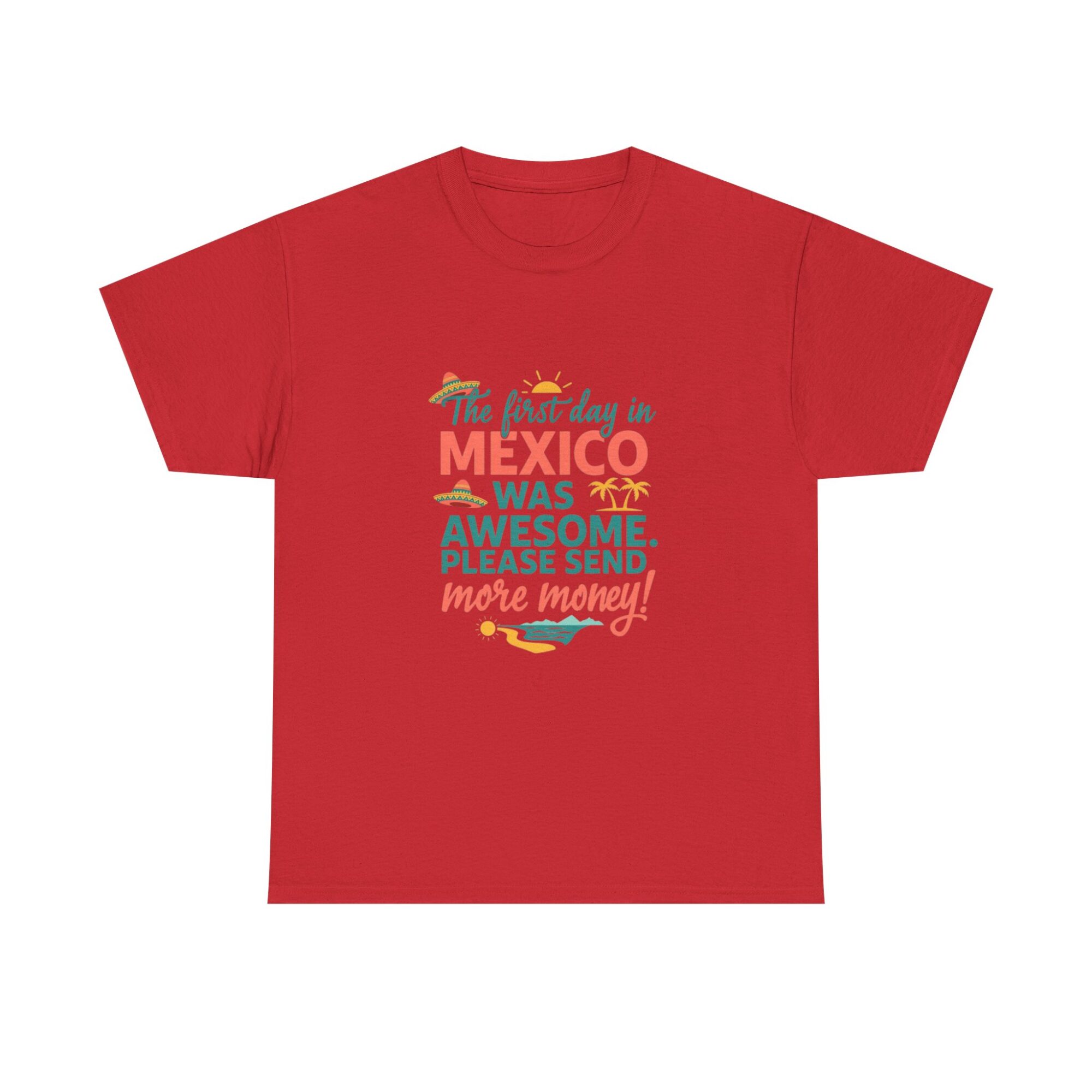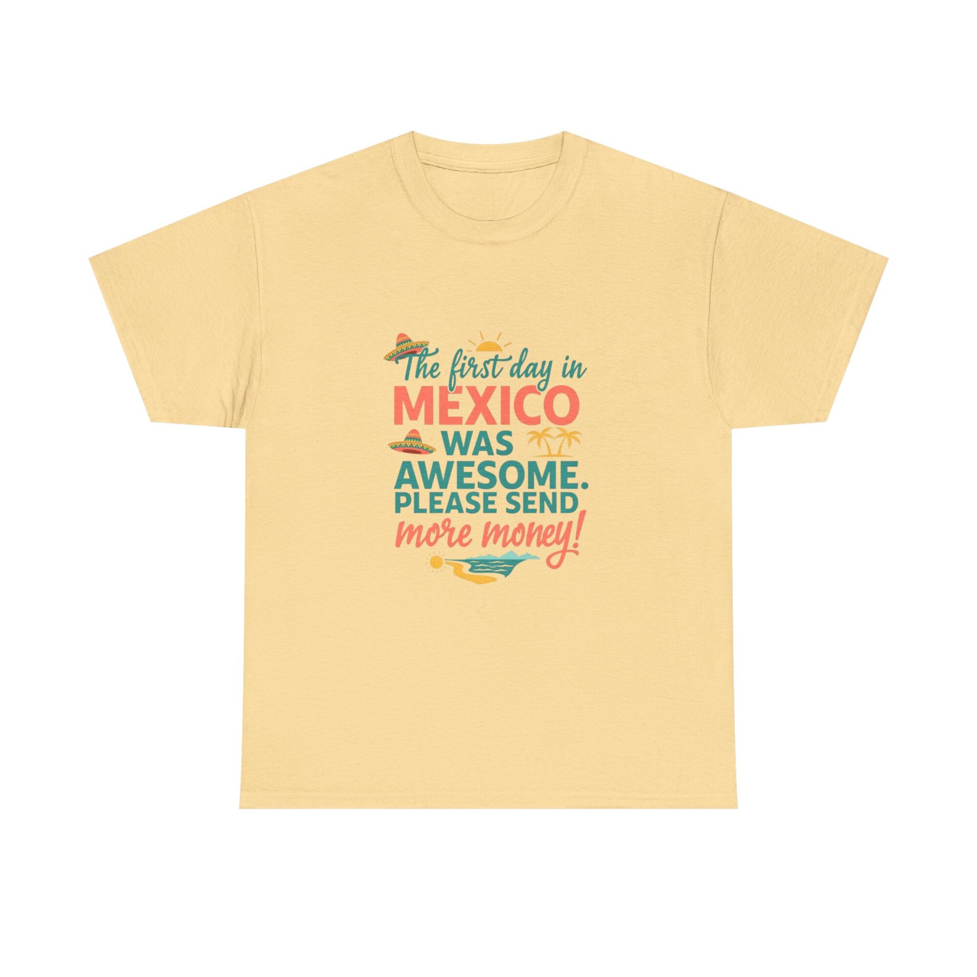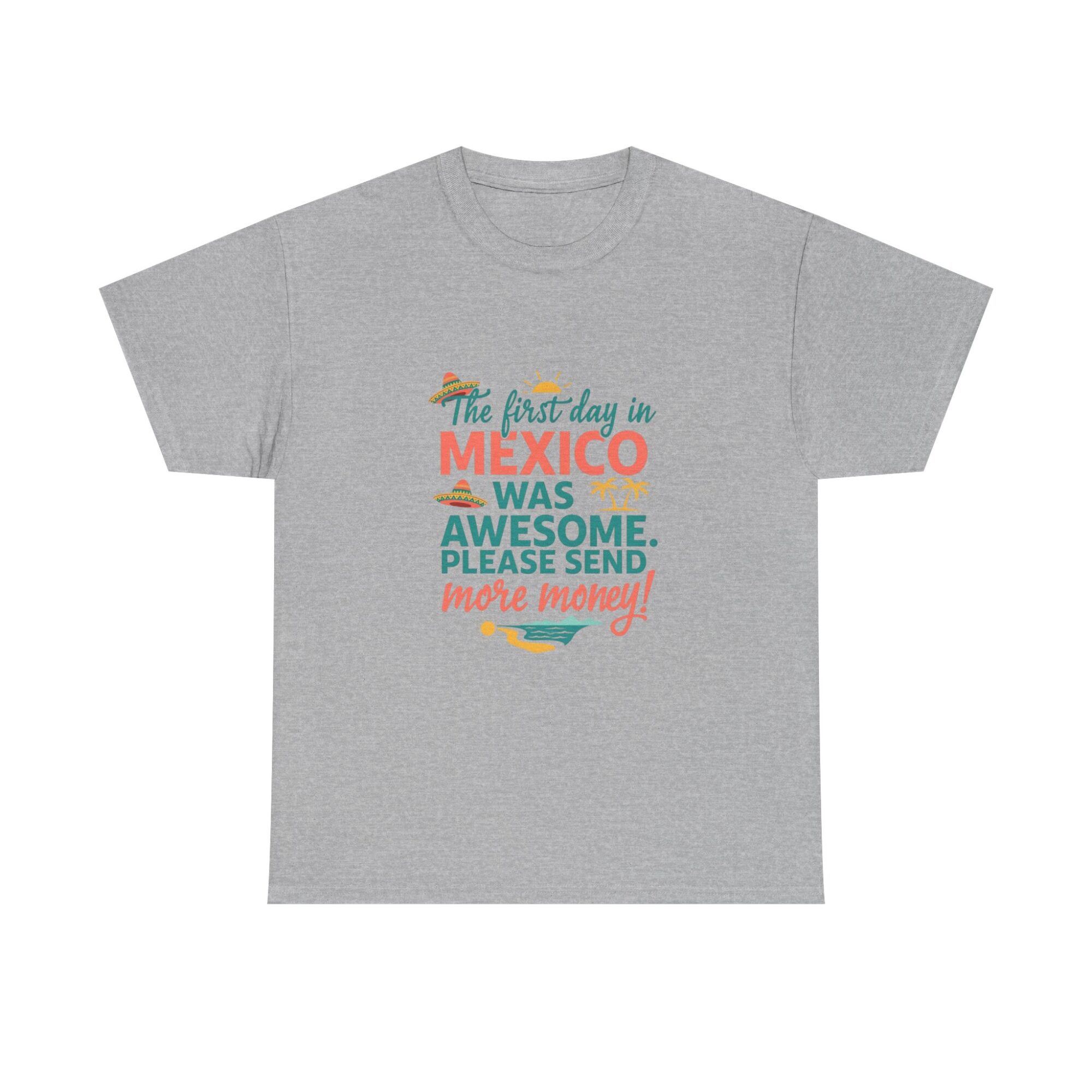 ✨ Stand Out Without Trying Too Hard ✨ Experience comfort and personality with our premium unisex graphic tee. Designed for everyday wear, this custom printed shirt features the playful quote, “The first day in MEXICO was awesome. PLEASE SEND more money!” Made with soft, breathable fabric and high-quality Printify direct-to-garment technology, this tee is both stylish and durable.