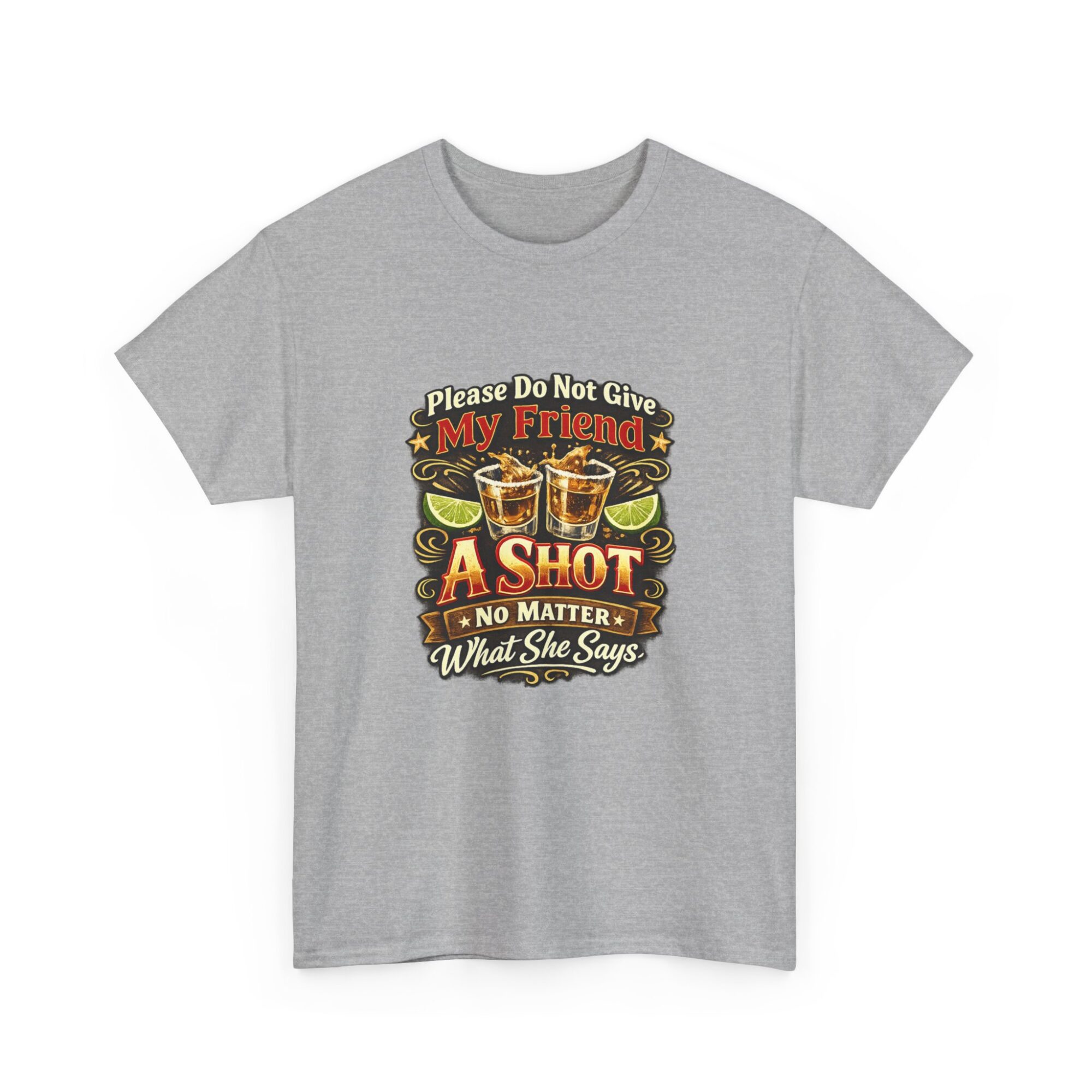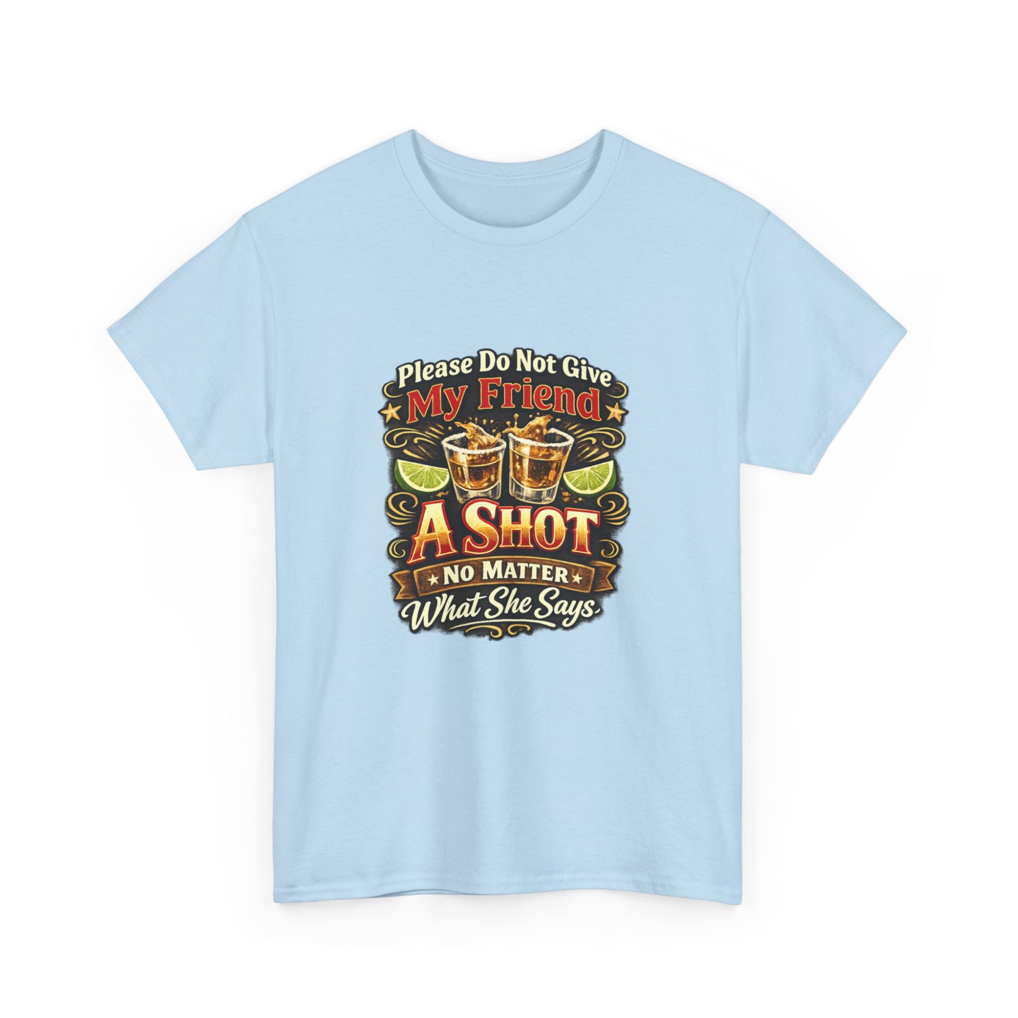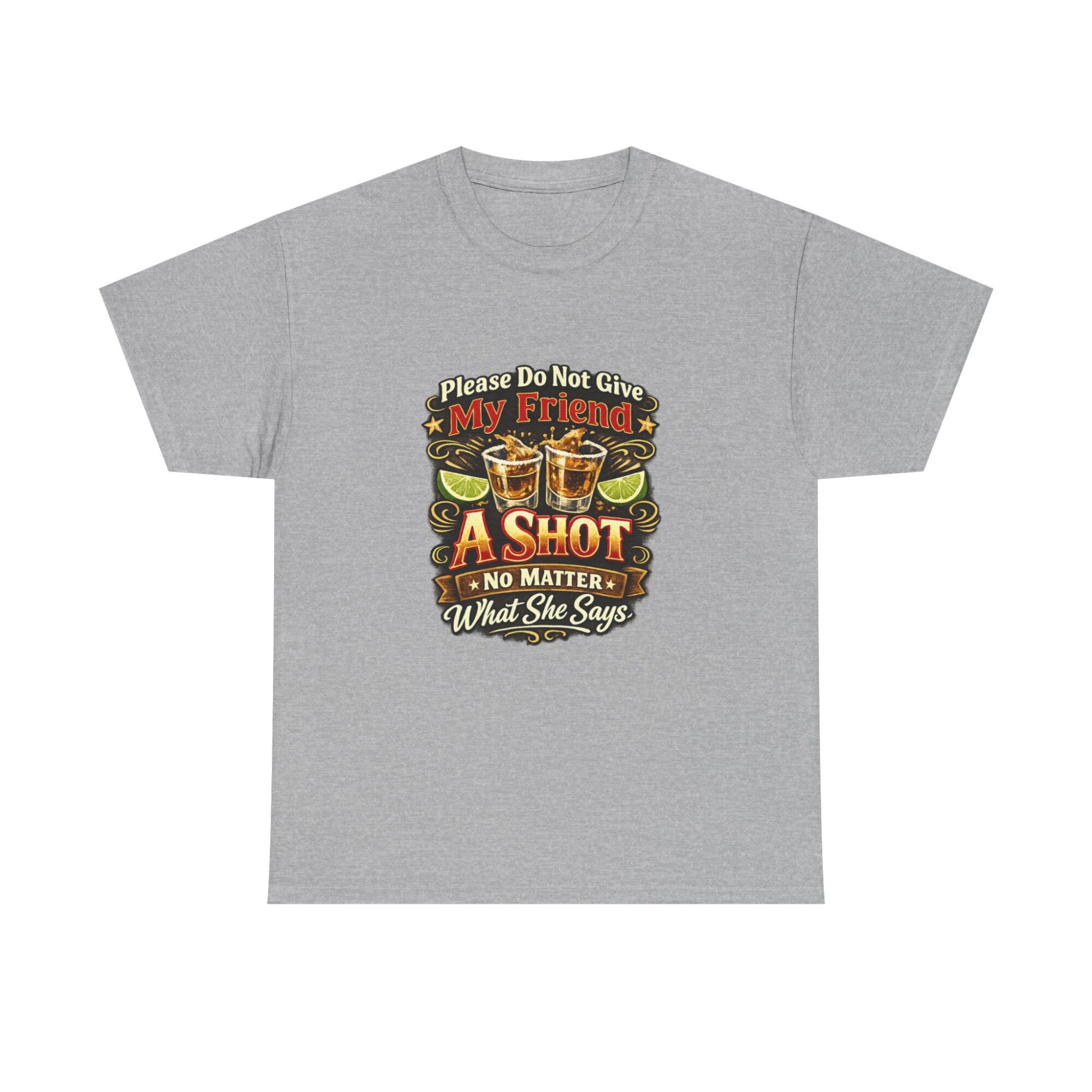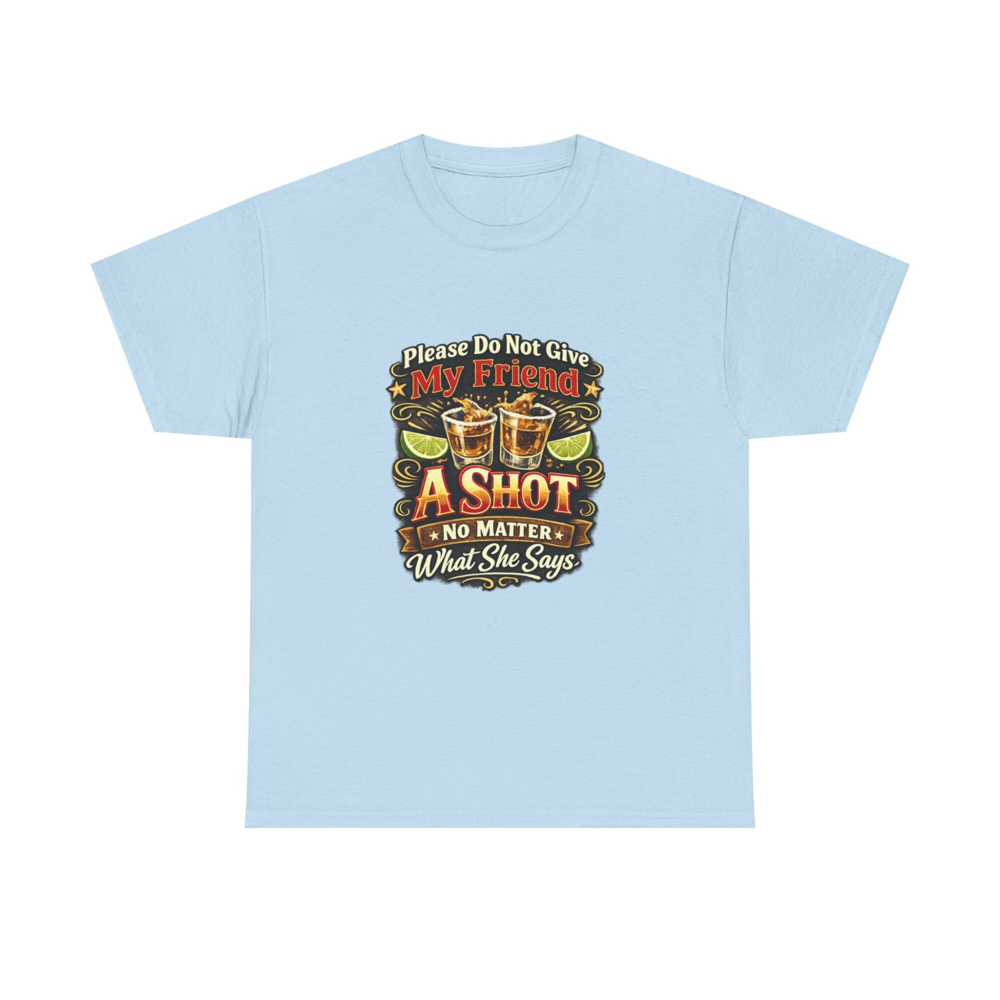 Introducing our humorous ‘Please Do Not Give My Friend A Shot’ graphic tee! Crafted from soft, breathable fabric, this premium unisex t-shirt is designed for comfort and style, making it ideal for casual wear, parties, or as a unique gift. With professional Printify direct-to-garment printing technology, expect vibrant and long-lasting colors. Stand out effortlessly and let this tee spark conversations and laughter wherever you go!