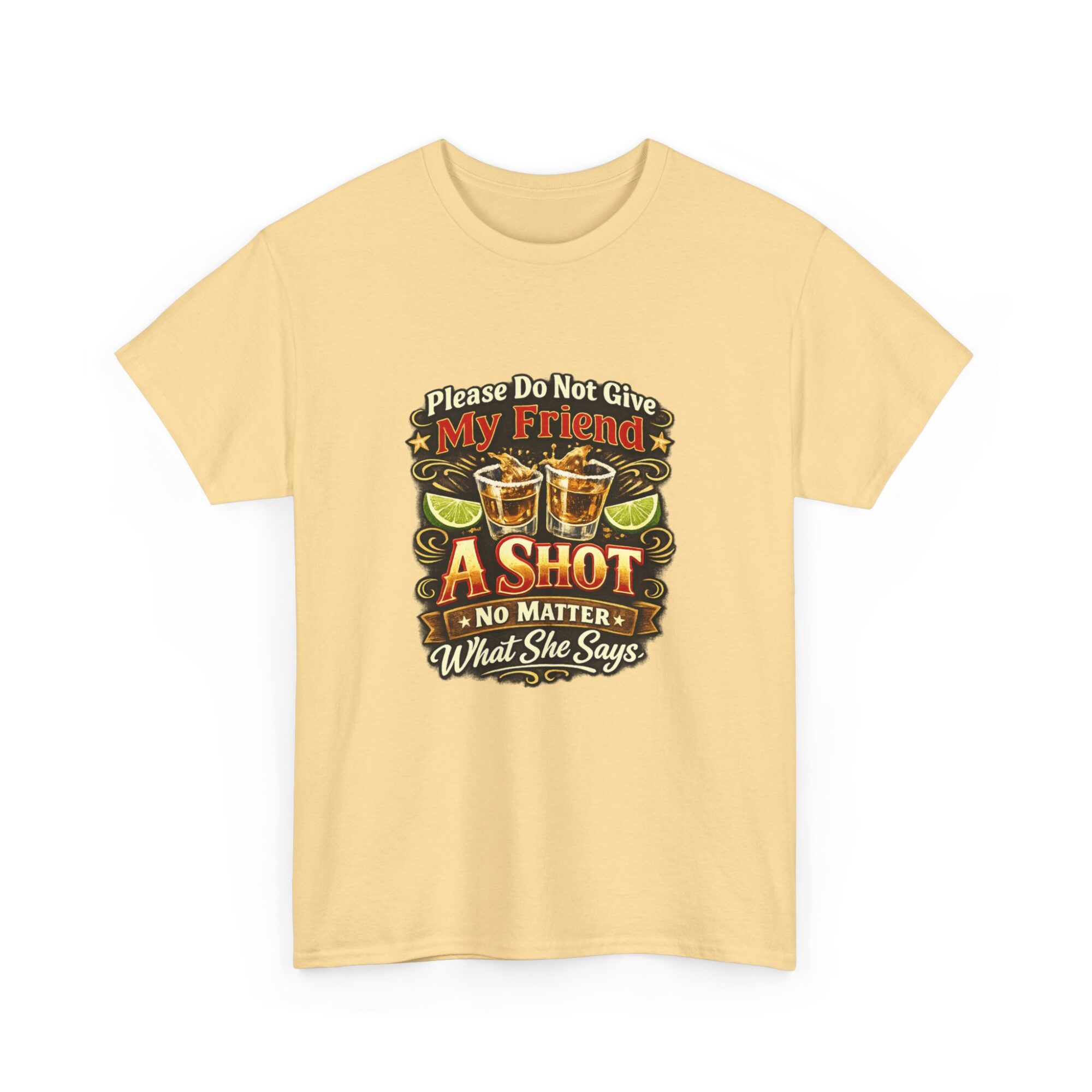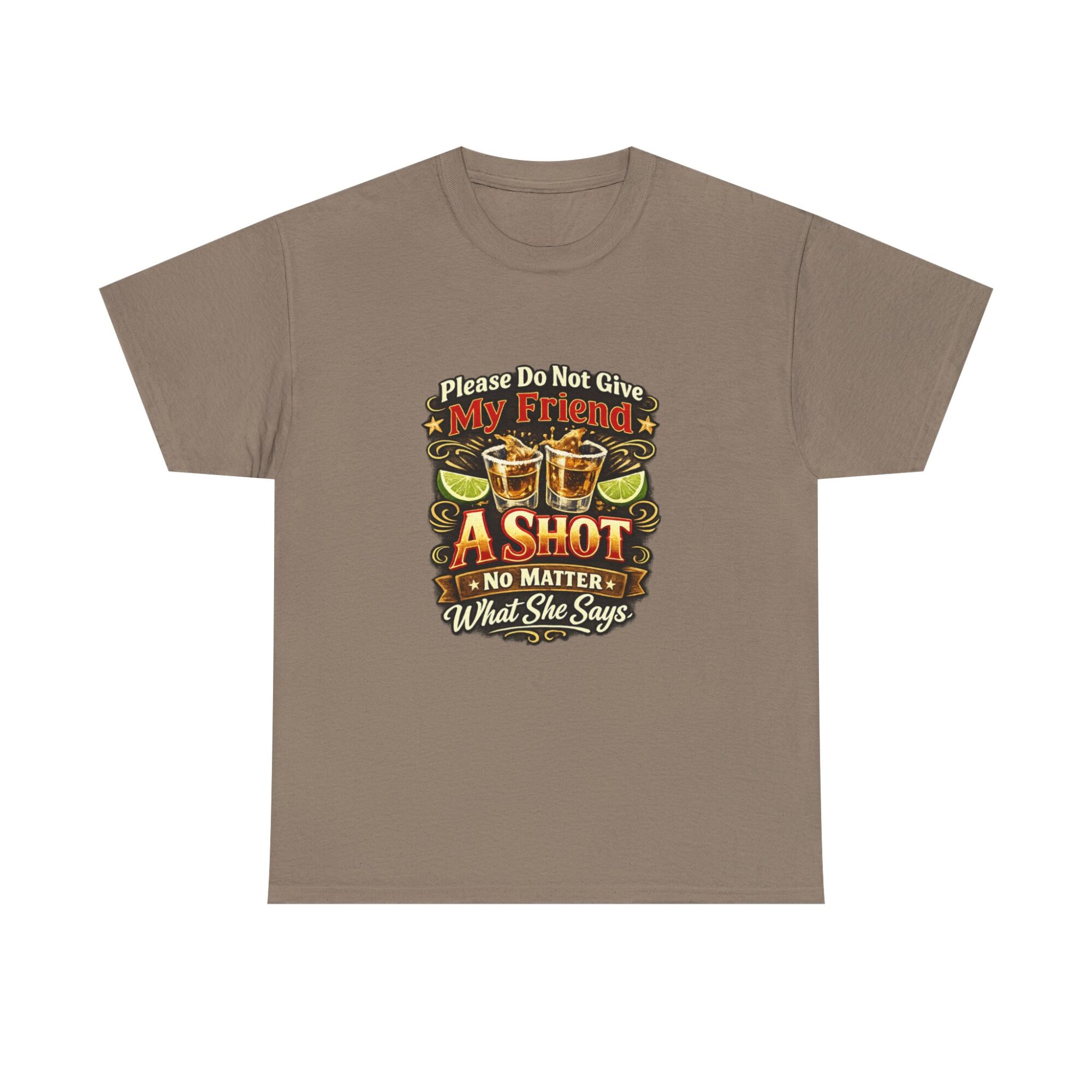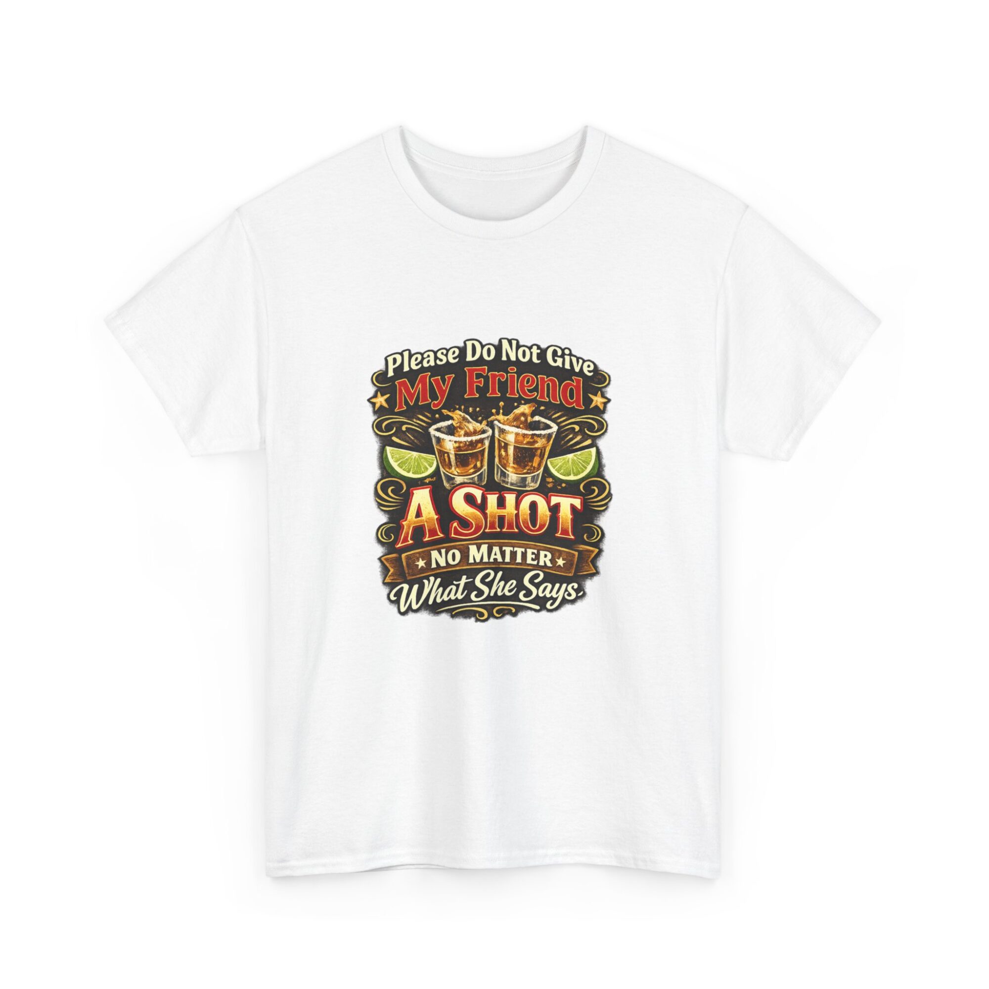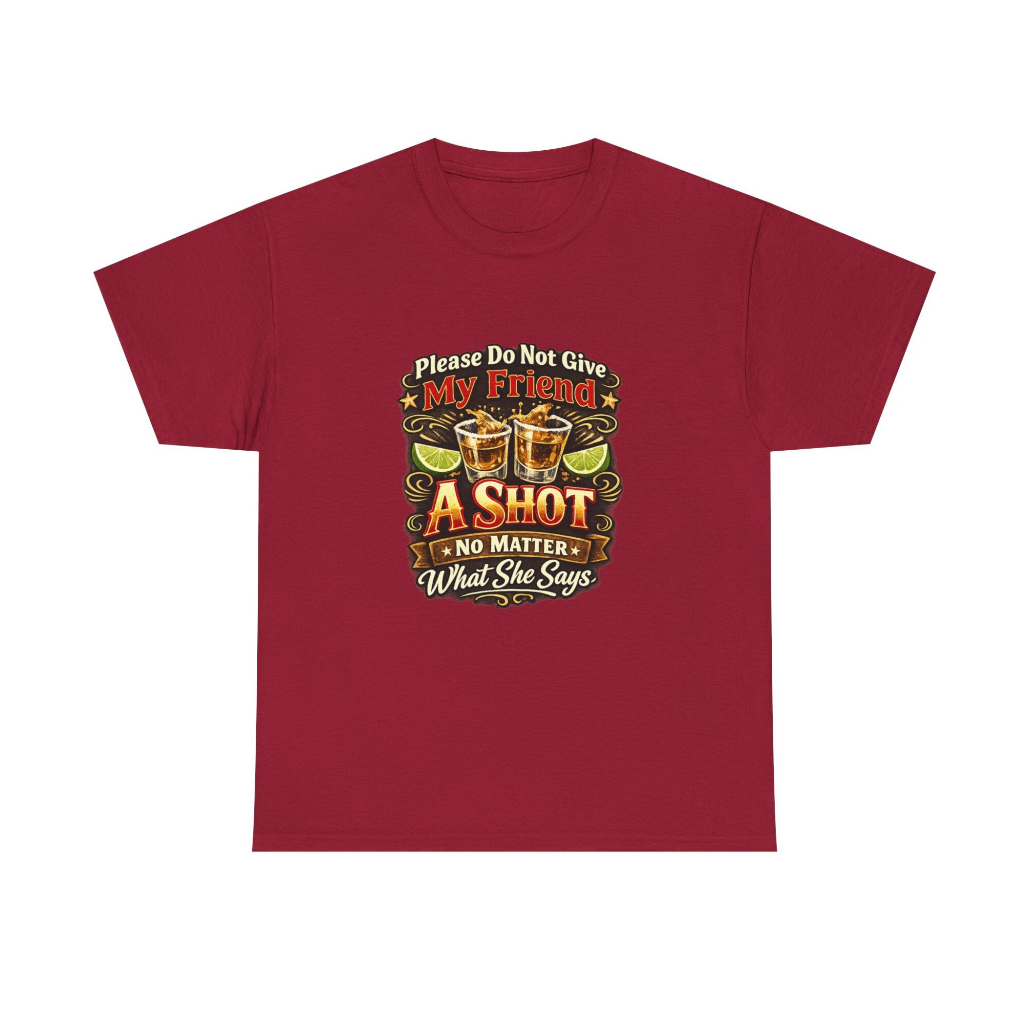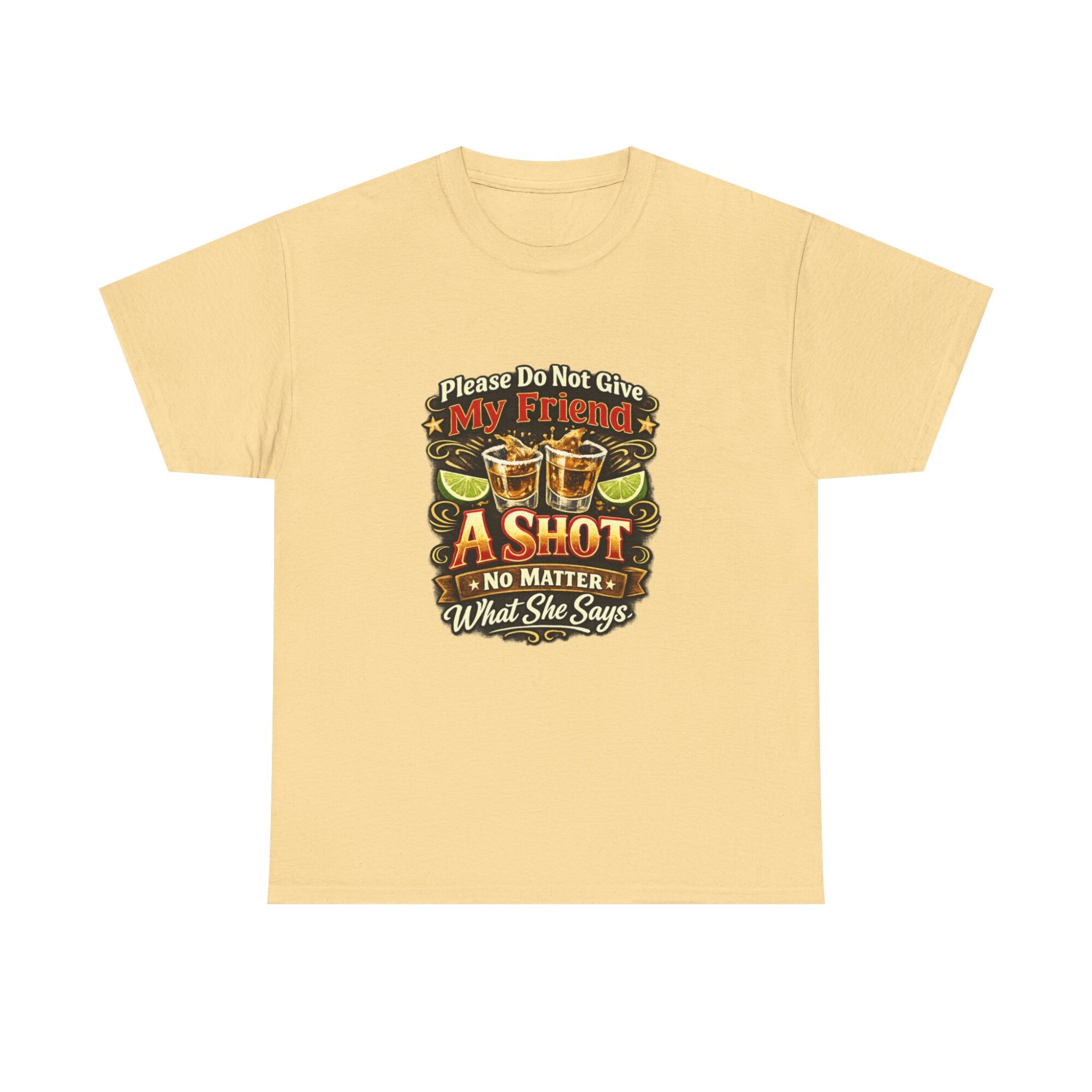 Introducing our humorous ‘Please Do Not Give My Friend A Shot’ graphic tee! Crafted from soft, breathable fabric, this premium unisex t-shirt is designed for comfort and style, making it ideal for casual wear, parties, or as a unique gift. With professional Printify direct-to-garment printing technology, expect vibrant and long-lasting colors. Stand out effortlessly and let this tee spark conversations and laughter wherever you go!