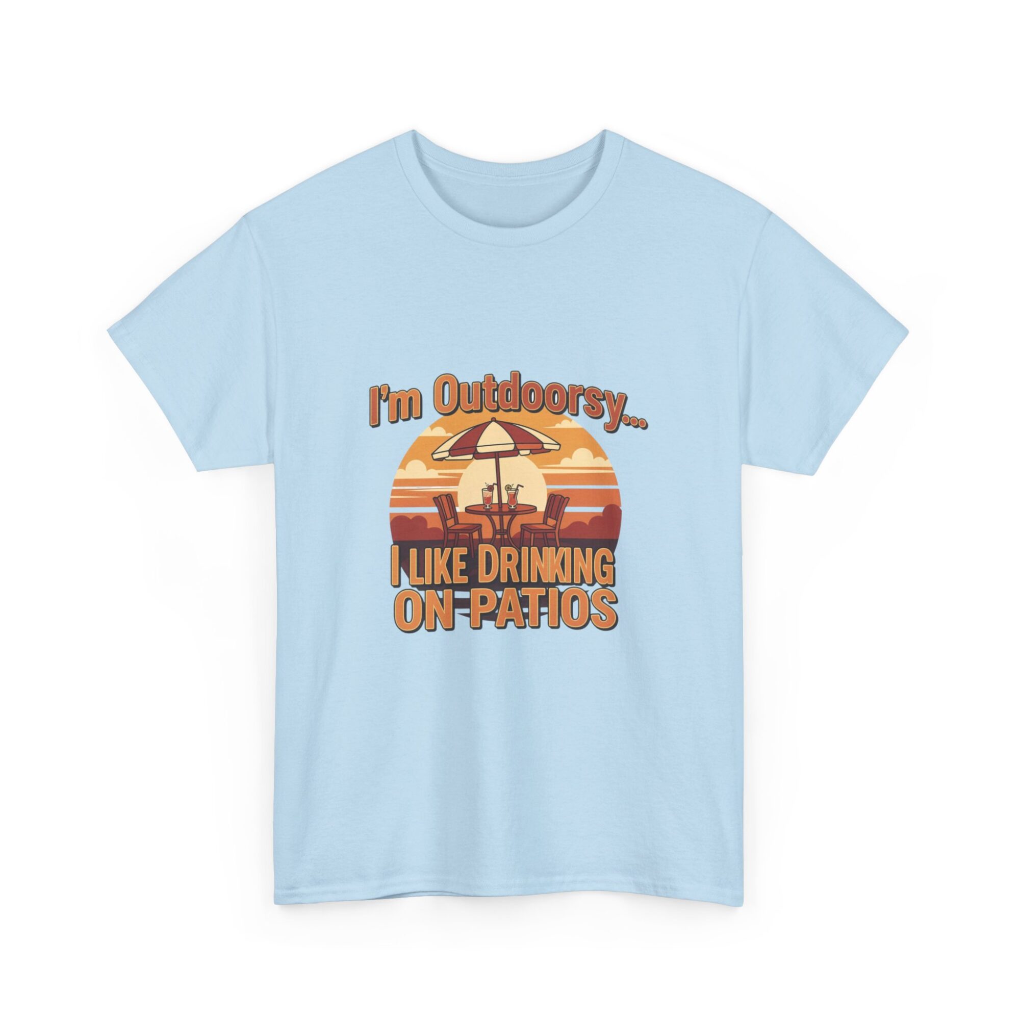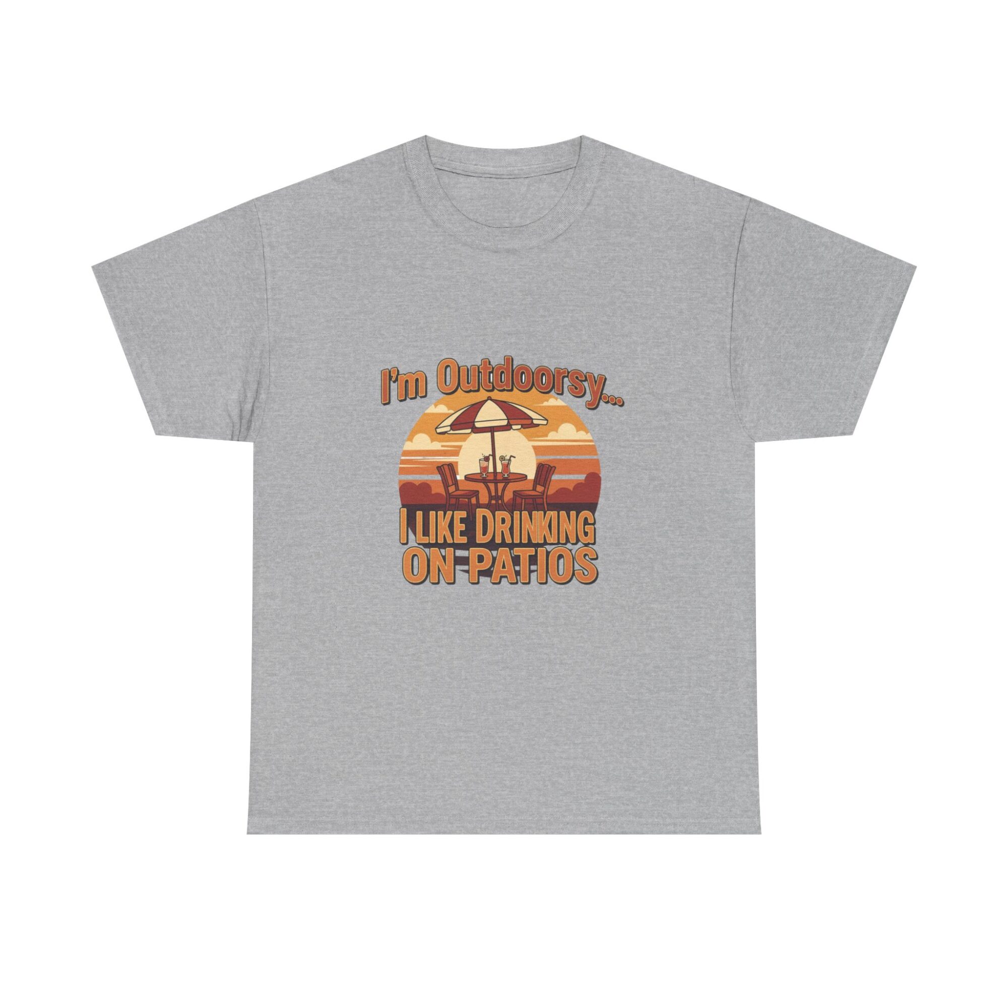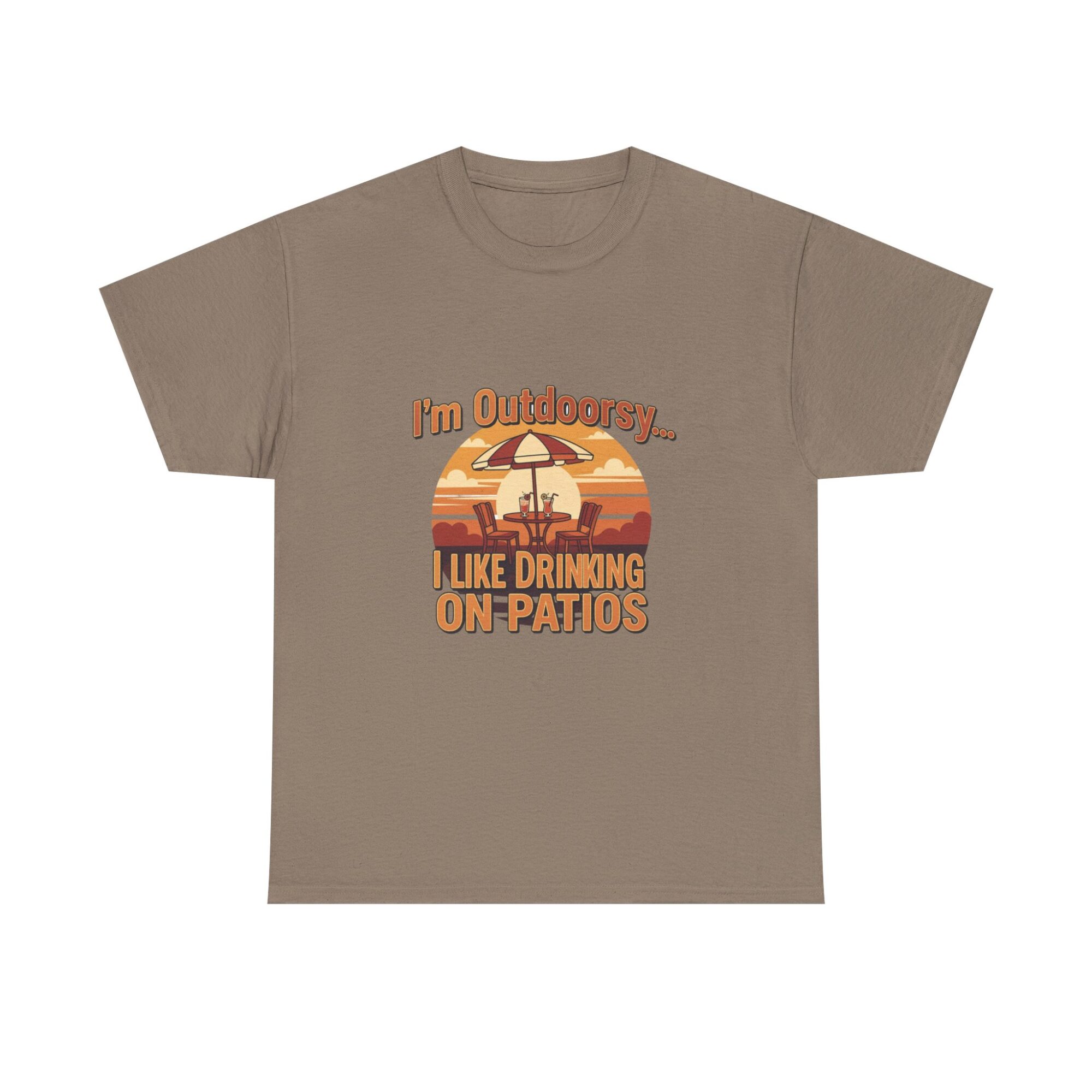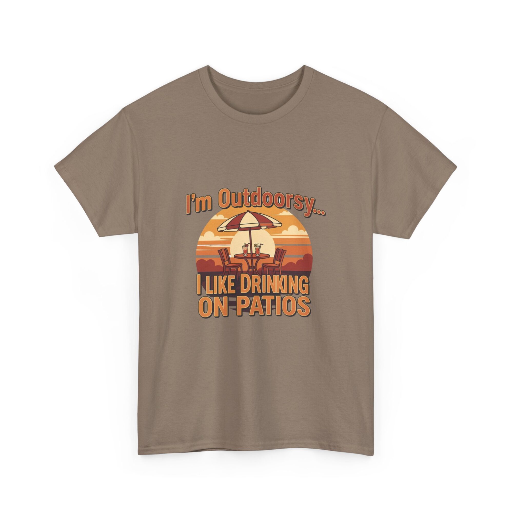 Embrace your fun side with our ‘I’m Outdoorsy, I Like Drinking on Patios’ graphic tee! Made from soft, breathable fabric, this unisex shirt is perfect for casual outings or as a humorous gift. Printed using top-notch technology for vibrant, long-lasting results, this premium t-shirt combines style and comfort effortlessly. Ideal for outdoor lovers and anyone who enjoys a good laugh, it’s a must-have addition to your wardrobe or a unique gift for friends and family.
