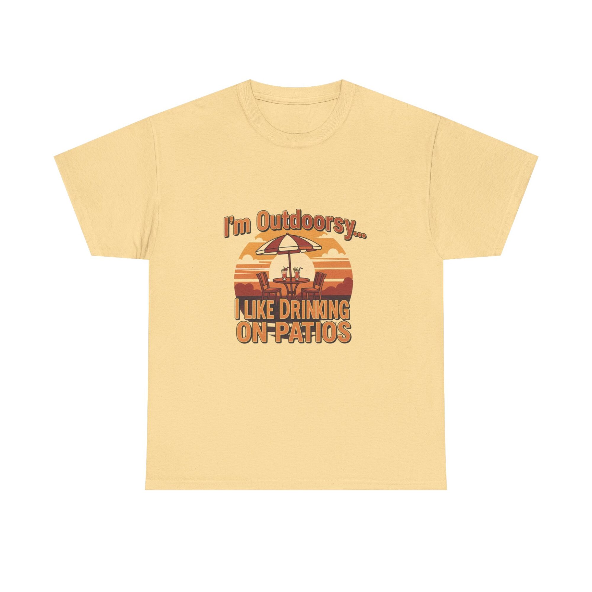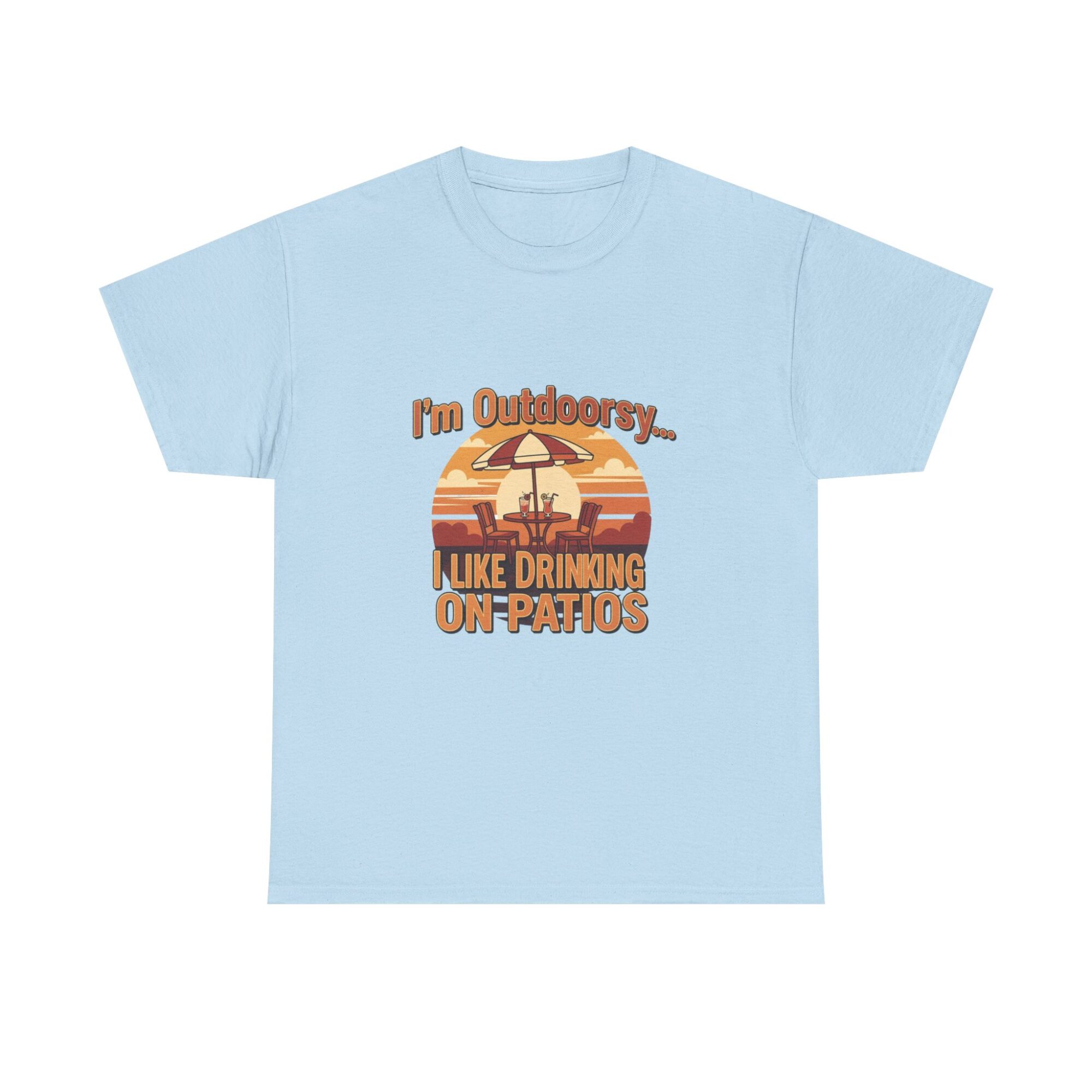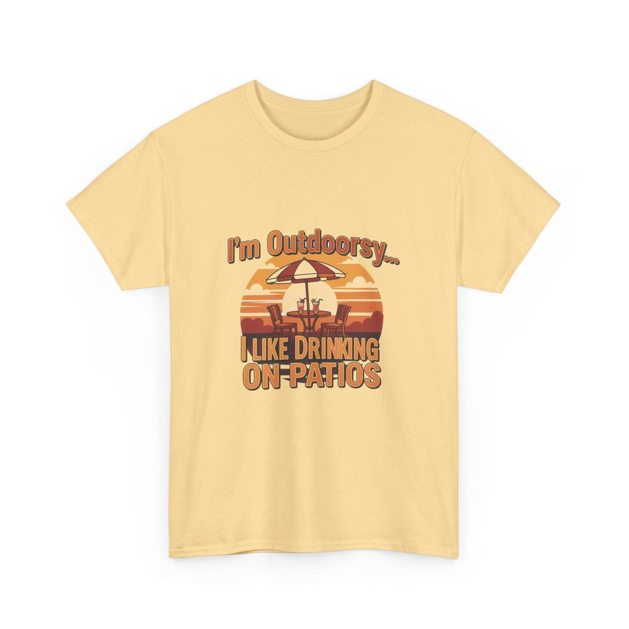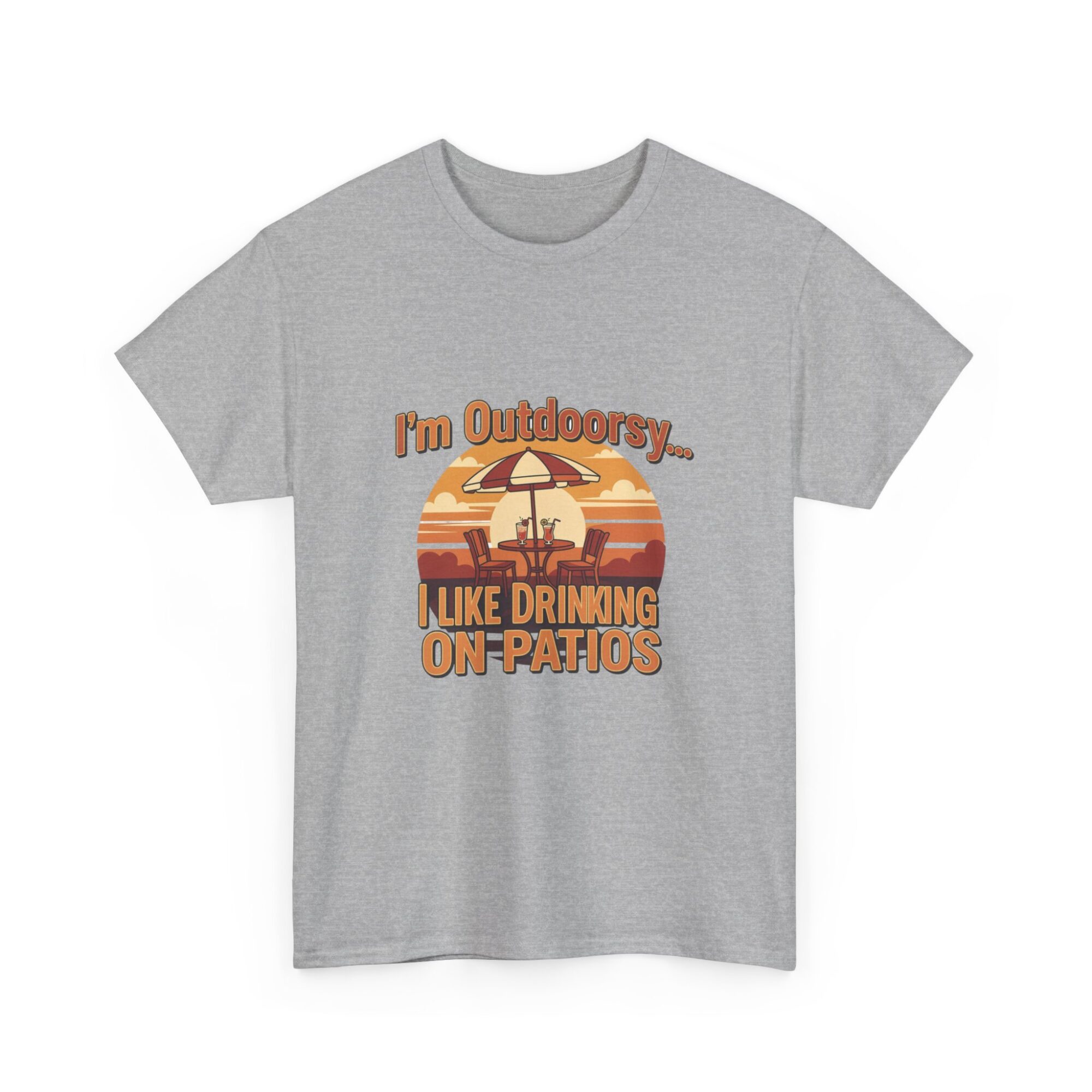 Embrace your fun side with our ‘I’m Outdoorsy, I Like Drinking on Patios’ graphic tee! Made from soft, breathable fabric, this unisex shirt is perfect for casual outings or as a humorous gift. Printed using top-notch technology for vibrant, long-lasting results, this premium t-shirt combines style and comfort effortlessly. Ideal for outdoor lovers and anyone who enjoys a good laugh, it’s a must-have addition to your wardrobe or a unique gift for friends and family.