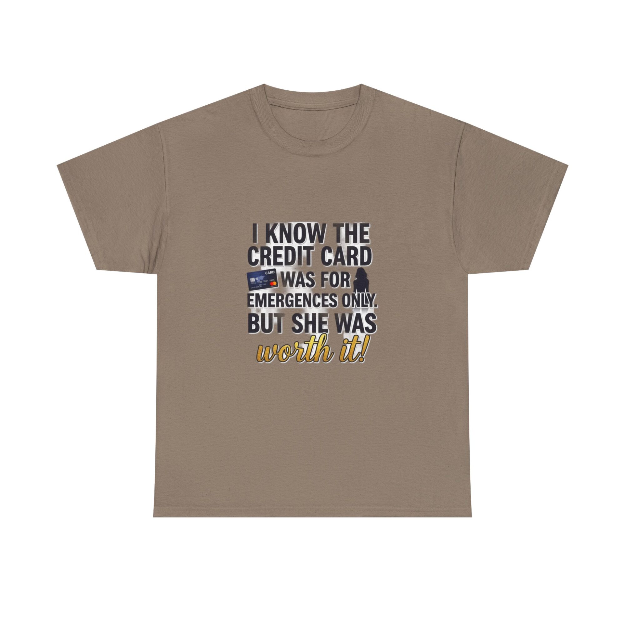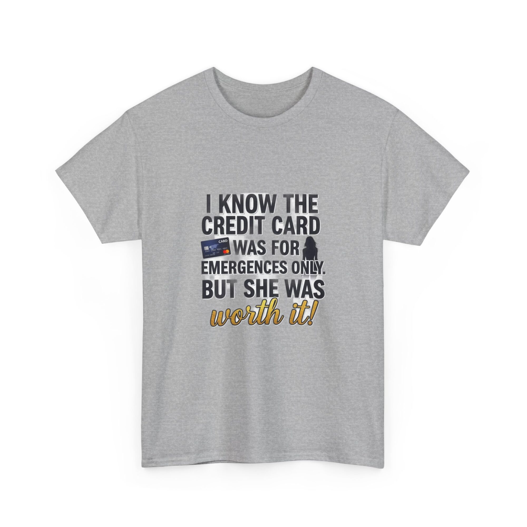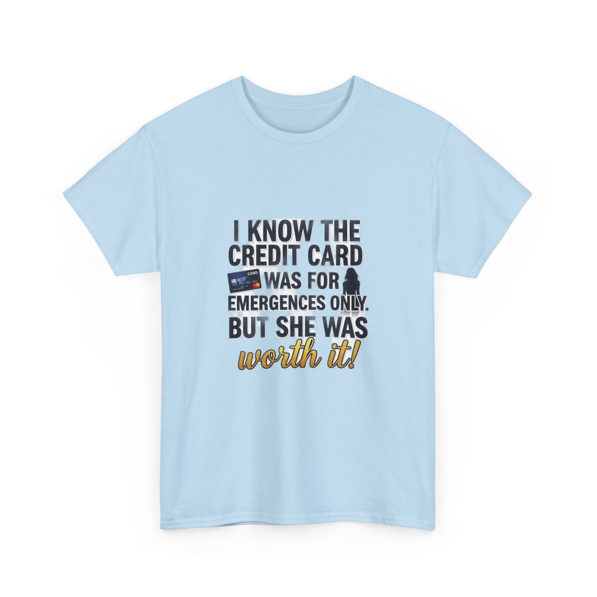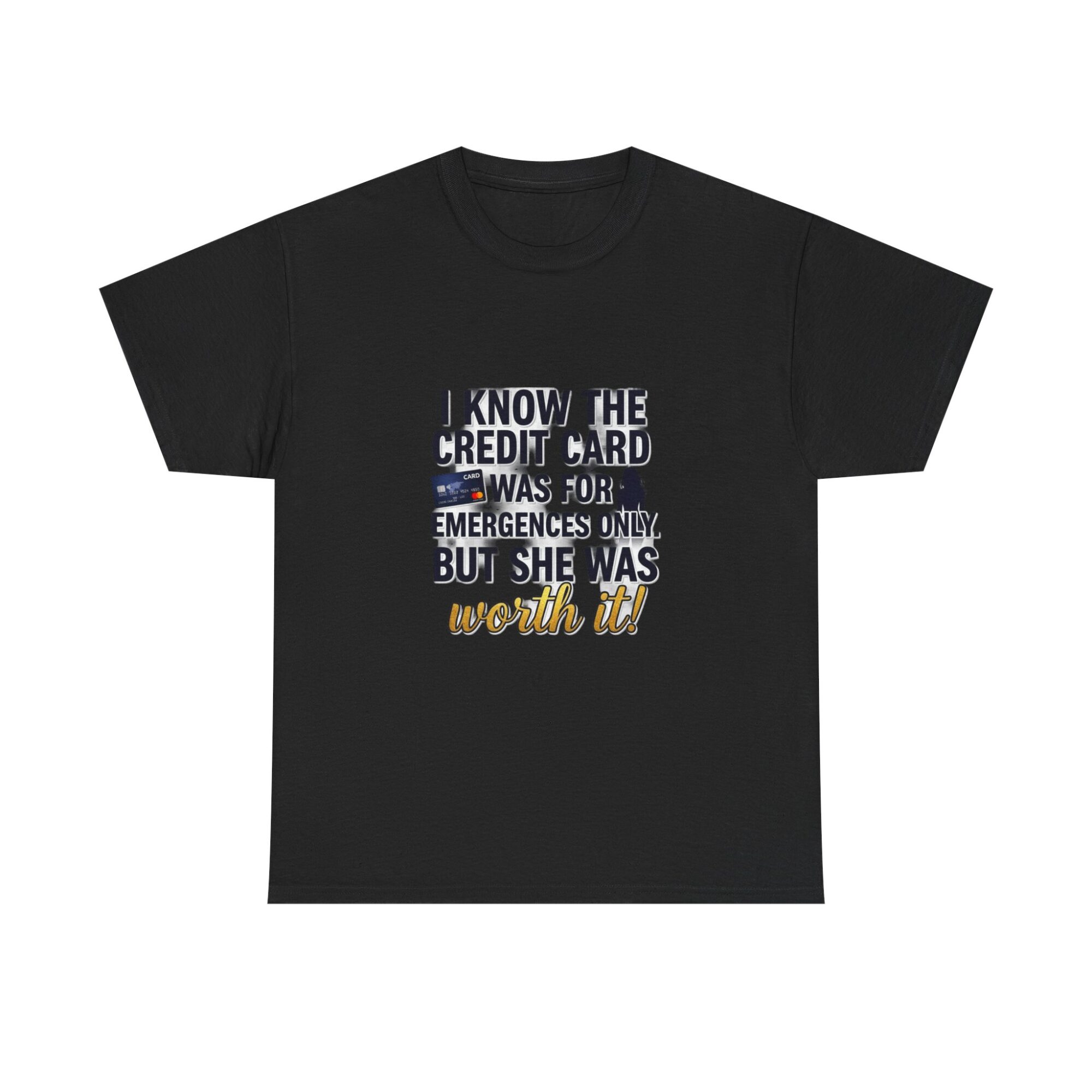 Make a statement with our high-quality unisex graphic tee featuring a humorous credit card quote. Crafted from soft, breathable fabric, this premium t-shirt is perfect for everyday wear, gifting, or showcasing your personality. Printed using advanced Printify technology, it ensures vibrant colors and long-lasting prints. Stand out with effortless style!