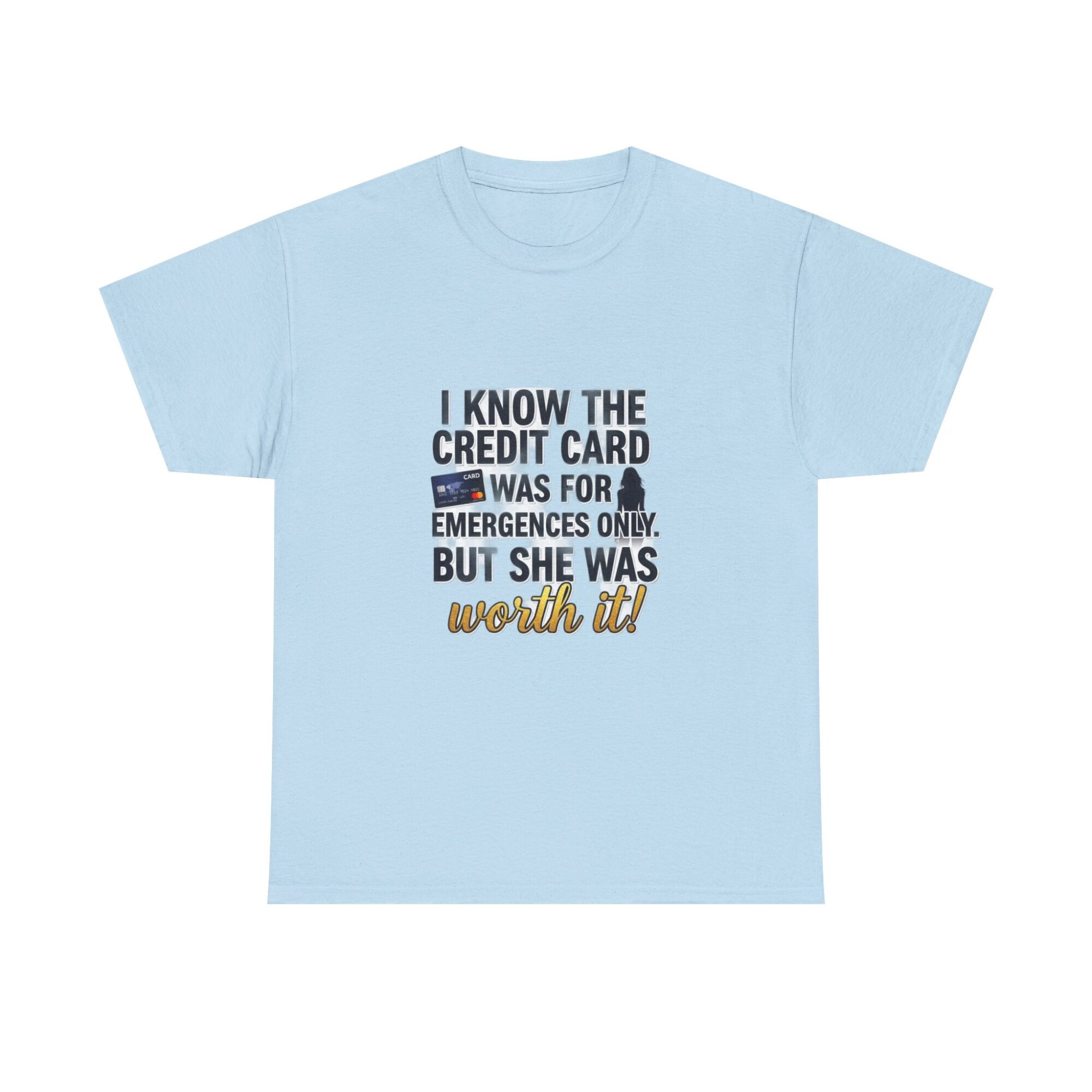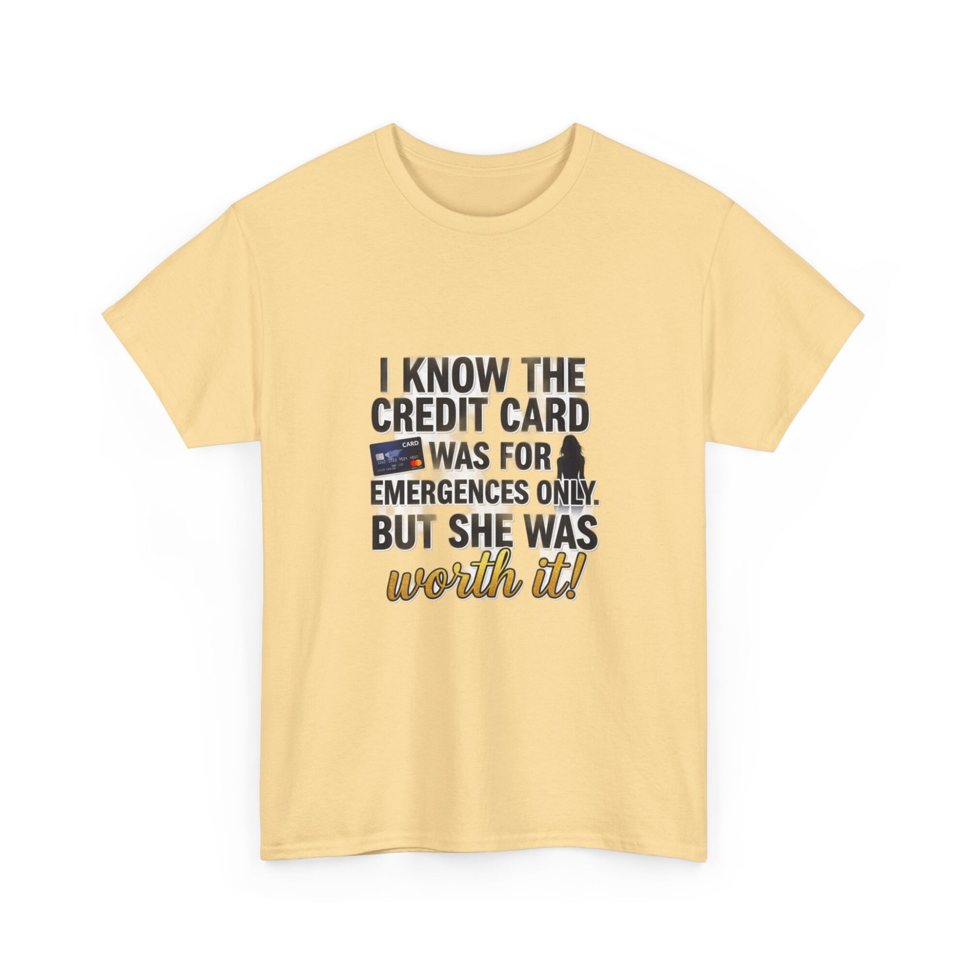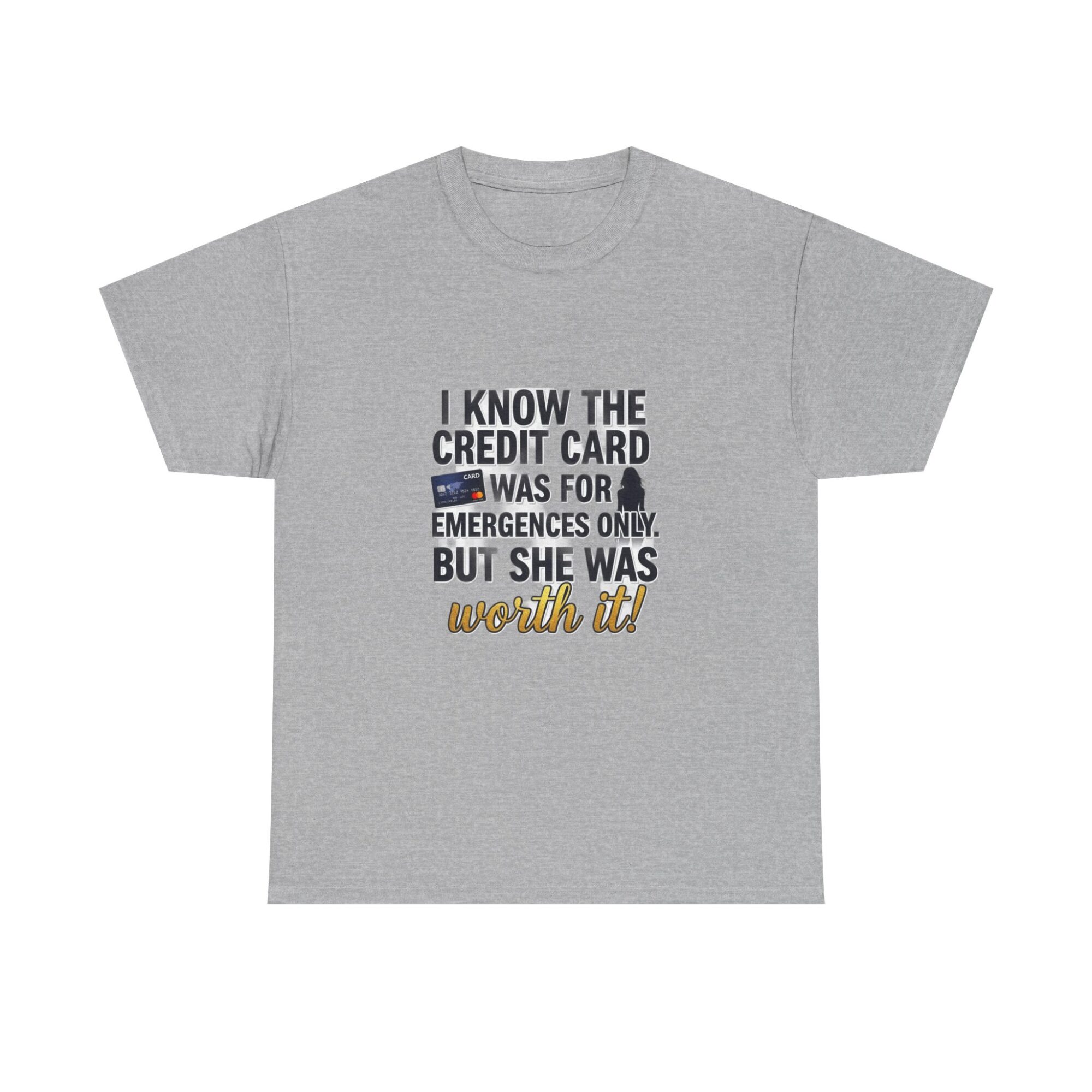 Make a statement with our high-quality unisex graphic tee featuring a humorous credit card quote. Crafted from soft, breathable fabric, this premium t-shirt is perfect for everyday wear, gifting, or showcasing your personality. Printed using advanced Printify technology, it ensures vibrant colors and long-lasting prints. Stand out with effortless style!