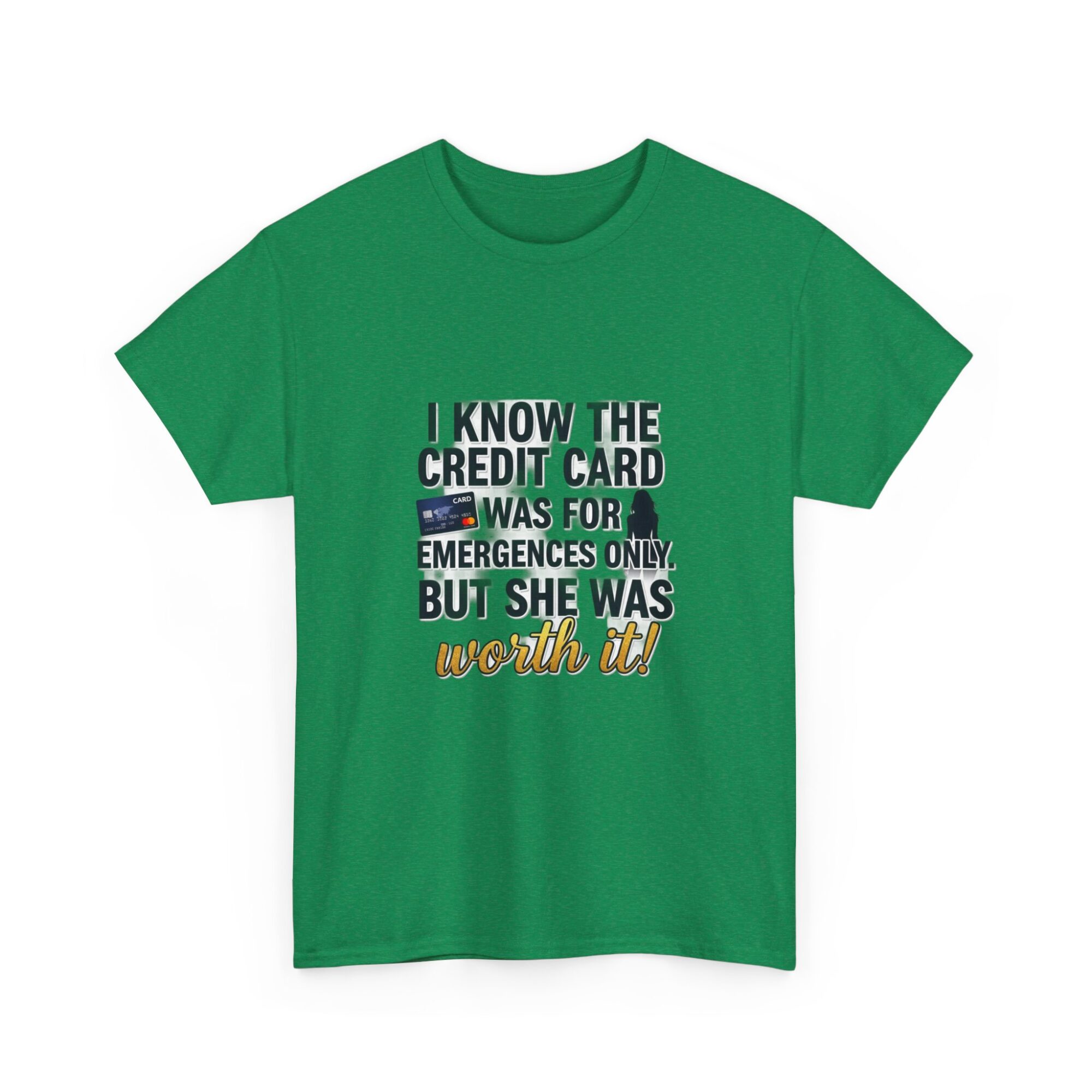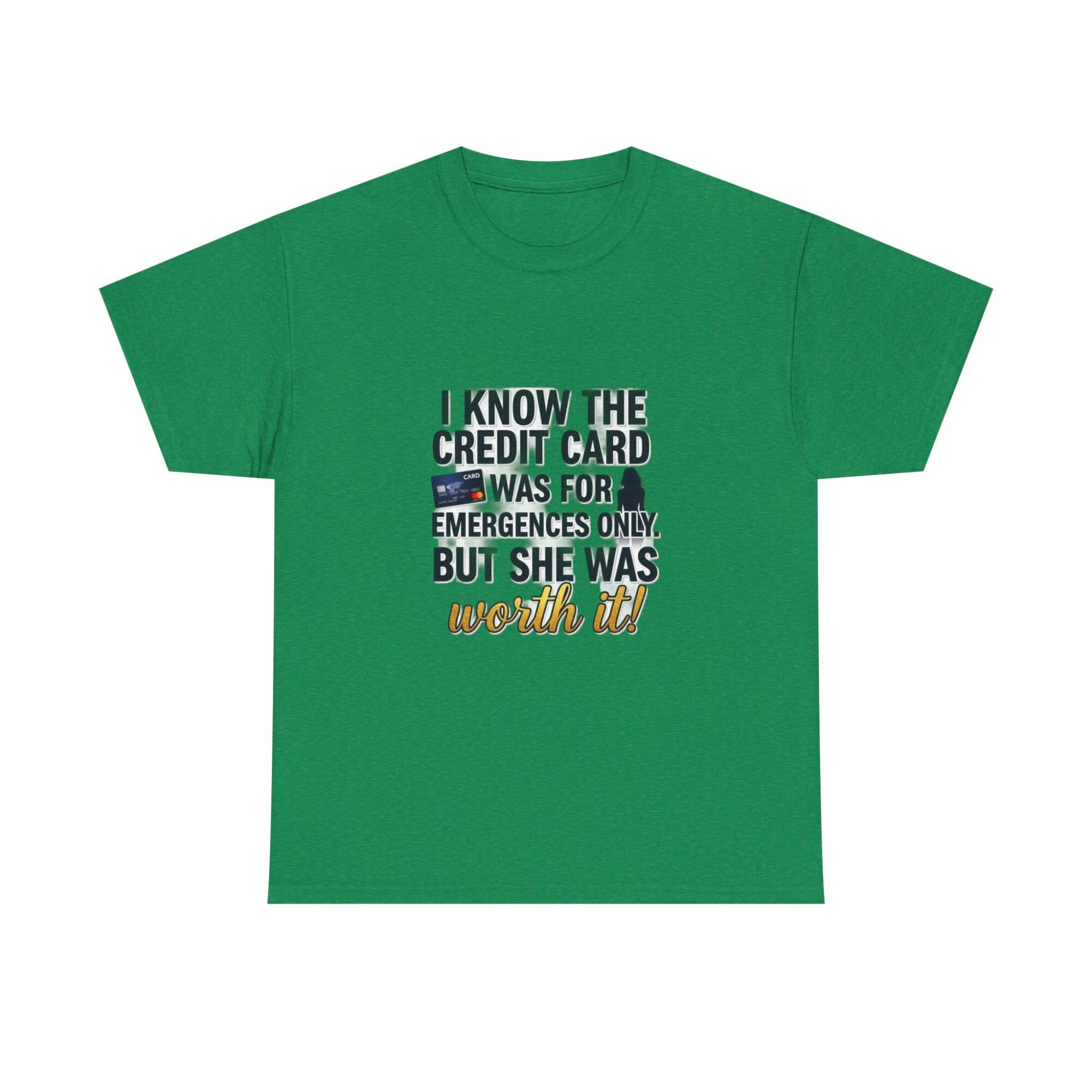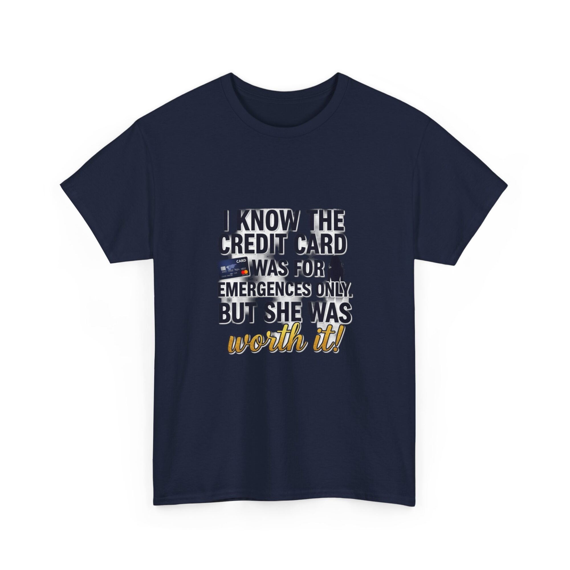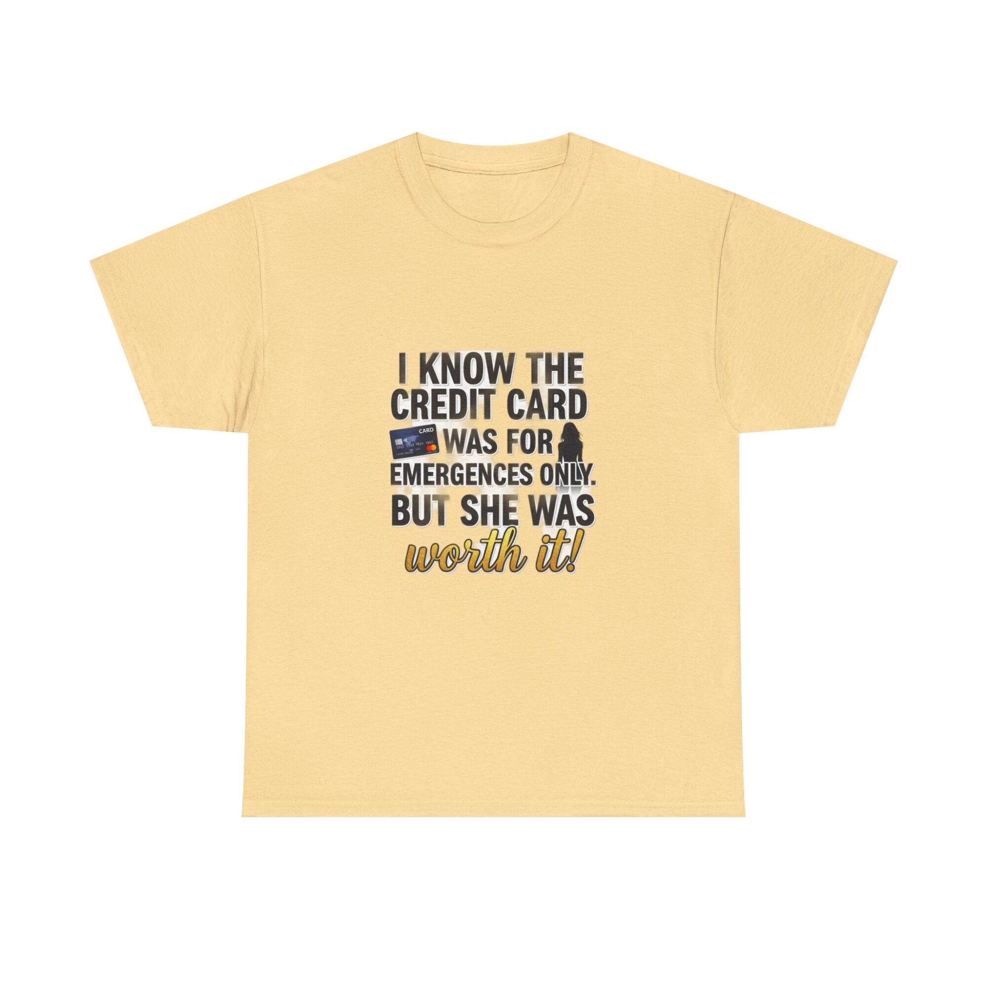 Make a statement with our high-quality unisex graphic tee featuring a humorous credit card quote. Crafted from soft, breathable fabric, this premium t-shirt is perfect for everyday wear, gifting, or showcasing your personality. Printed using advanced Printify technology, it ensures vibrant colors and long-lasting prints. Stand out with effortless style!